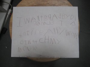 Blue wrote a note back to mom and dad that said, “I miss you. I want