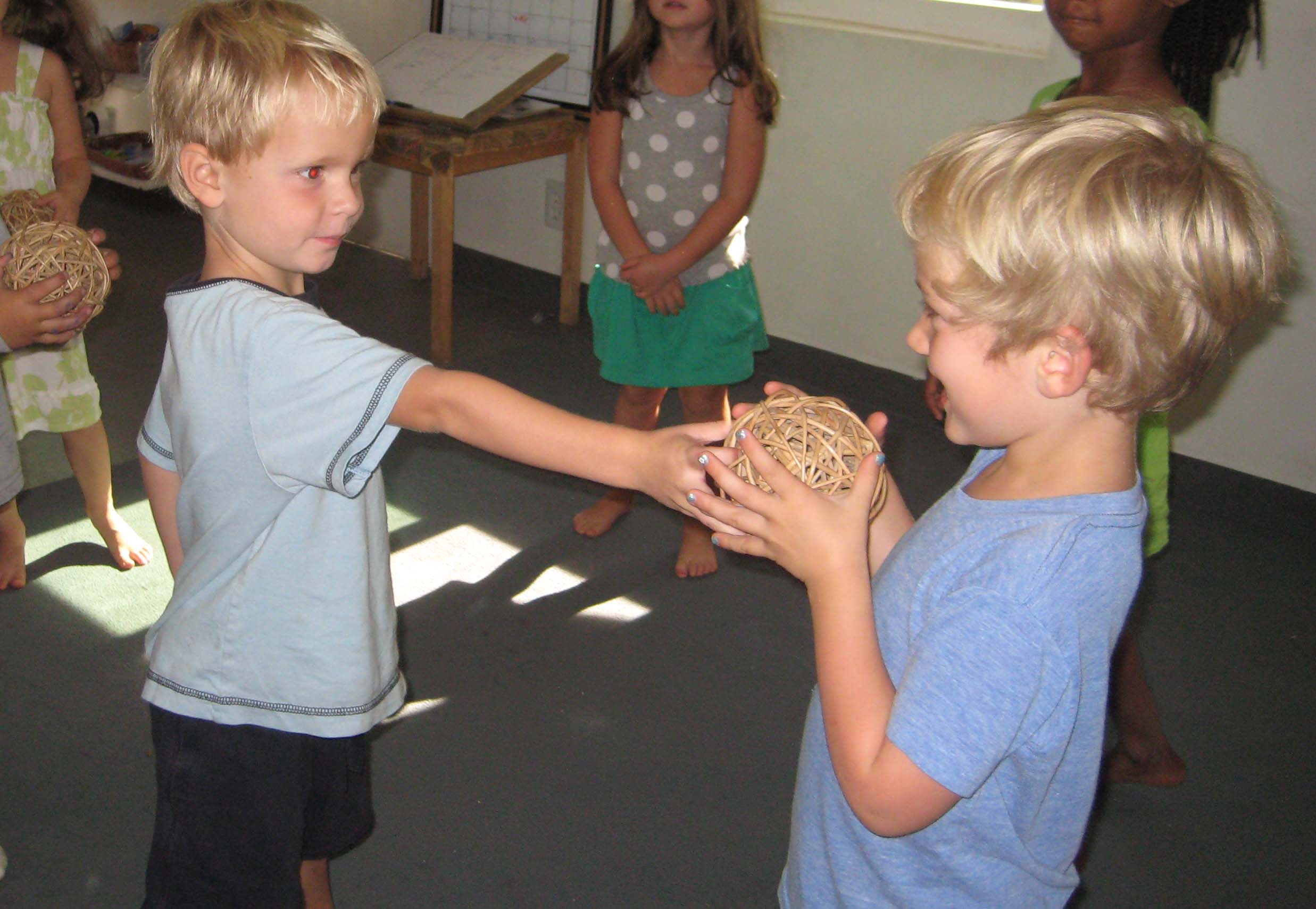 After this game, Ilaan moved on to finding round objects in the room for the children to try replicating with their bodies.