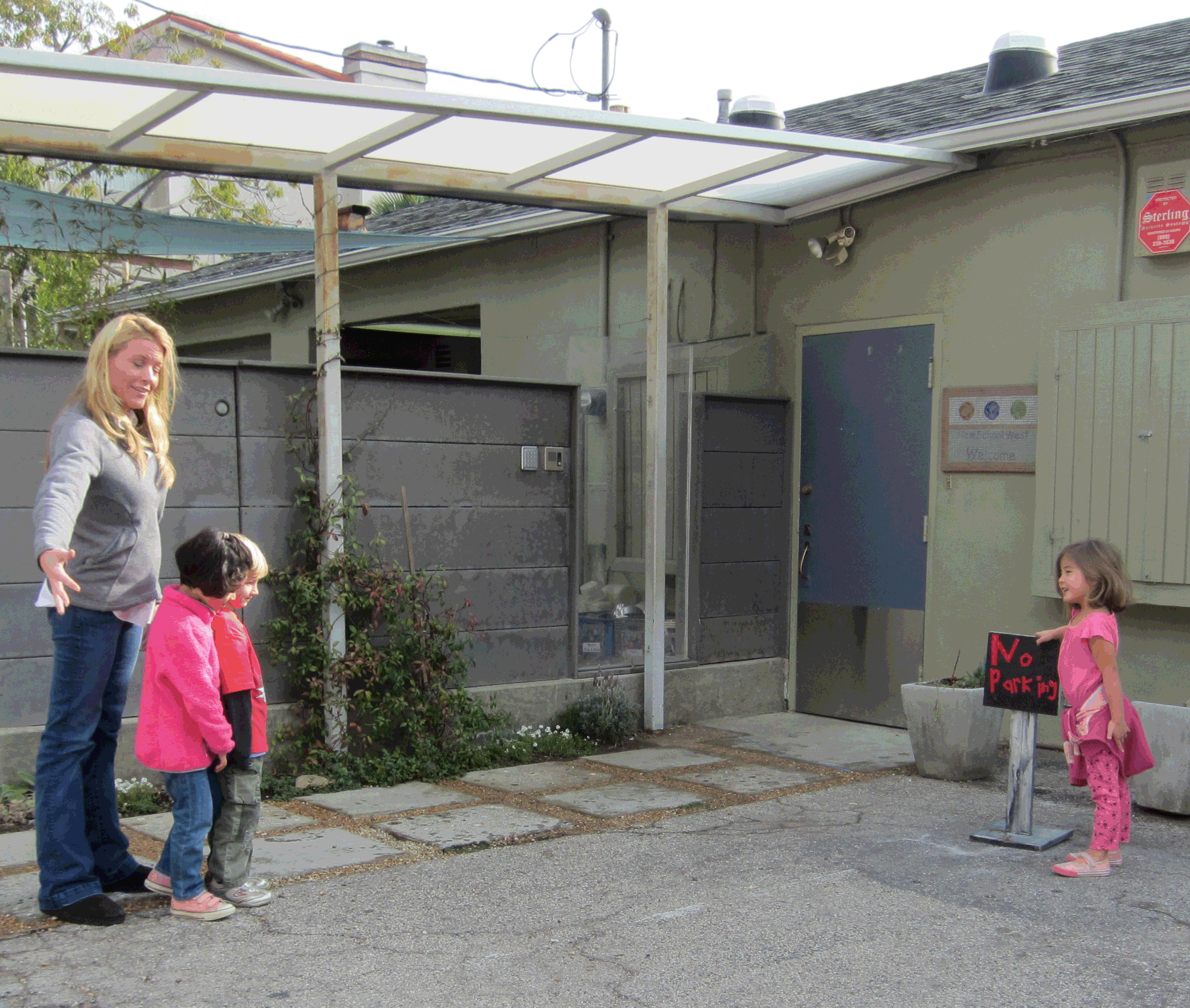 Kristin: “So, where will the sign go to keep cars from driving into the space?”