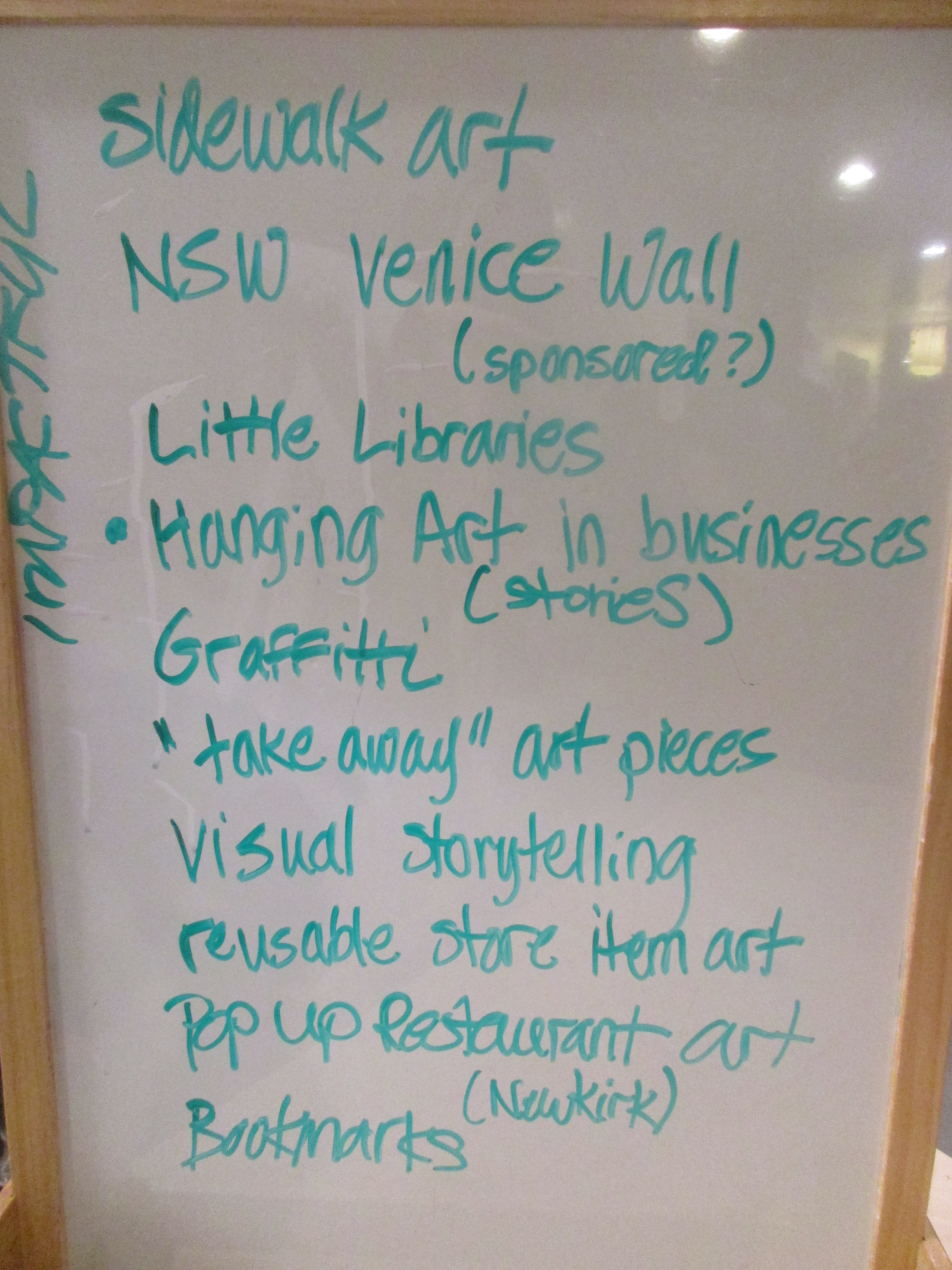 The children’s interest reinforced our desire to share a strong image of children in the neighborhood. So, when we planned our teacher in-service, it was with this in mind: If we could install children’s work anywhere in our community, where would it be most impactful? Teachers made presentations of big dreams. Some of us imagined children’s work in Metro Stations, local businesses, and roadside signage. But, we wanted to know what YOU imagined! When designing last night’s presentation, we planned to brainstorm together with you.