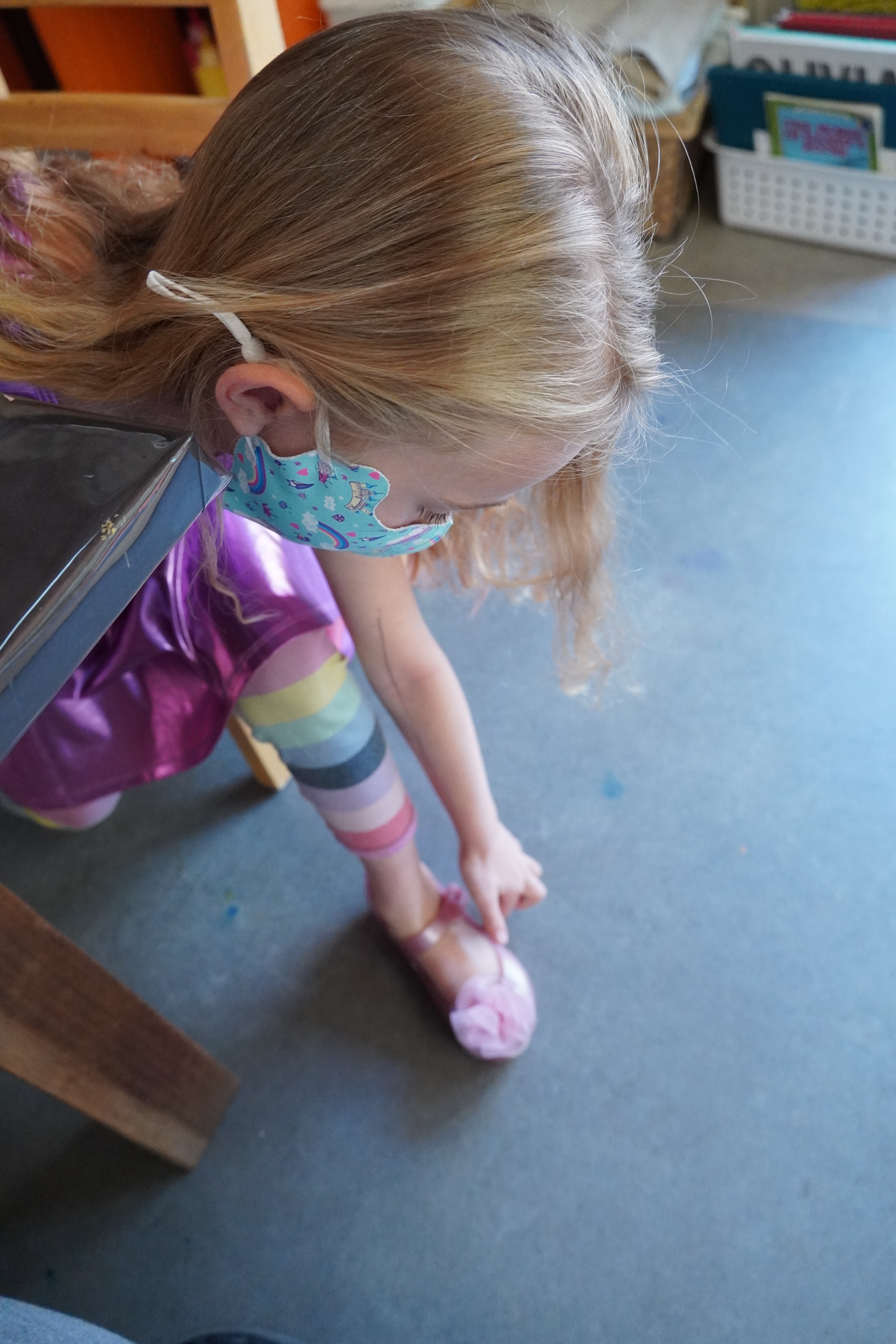 When Mason came to her legs, she drew a single line. I asked her about the shape of her legs and invited her to look at her legs.