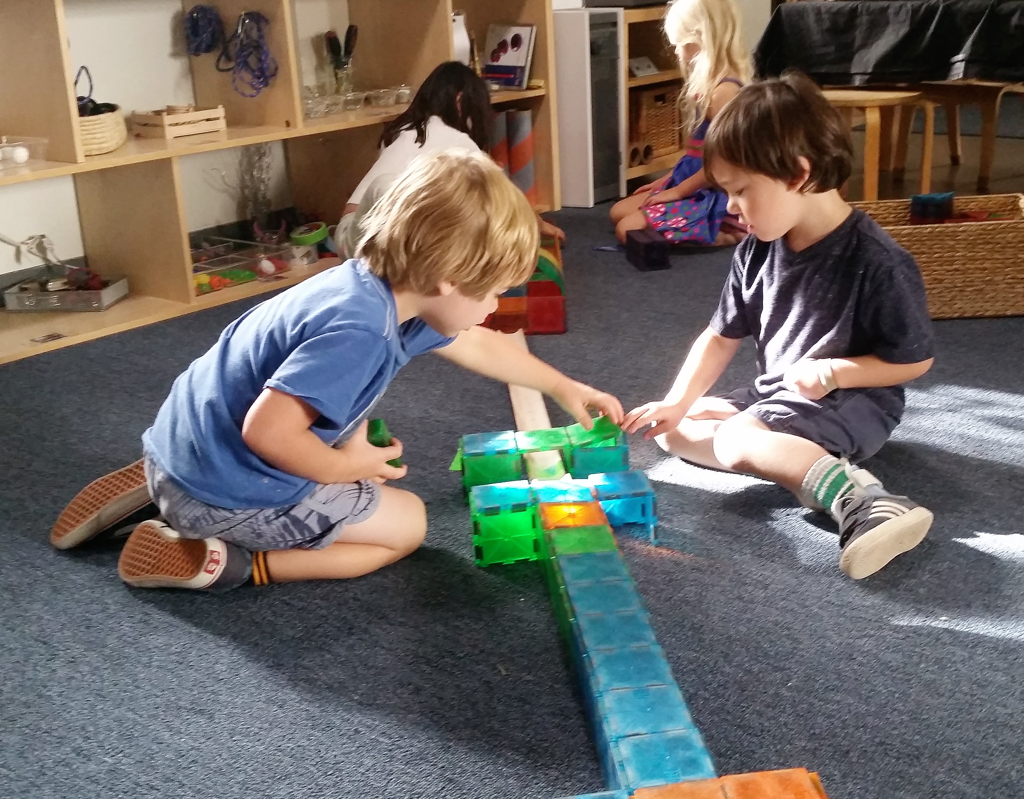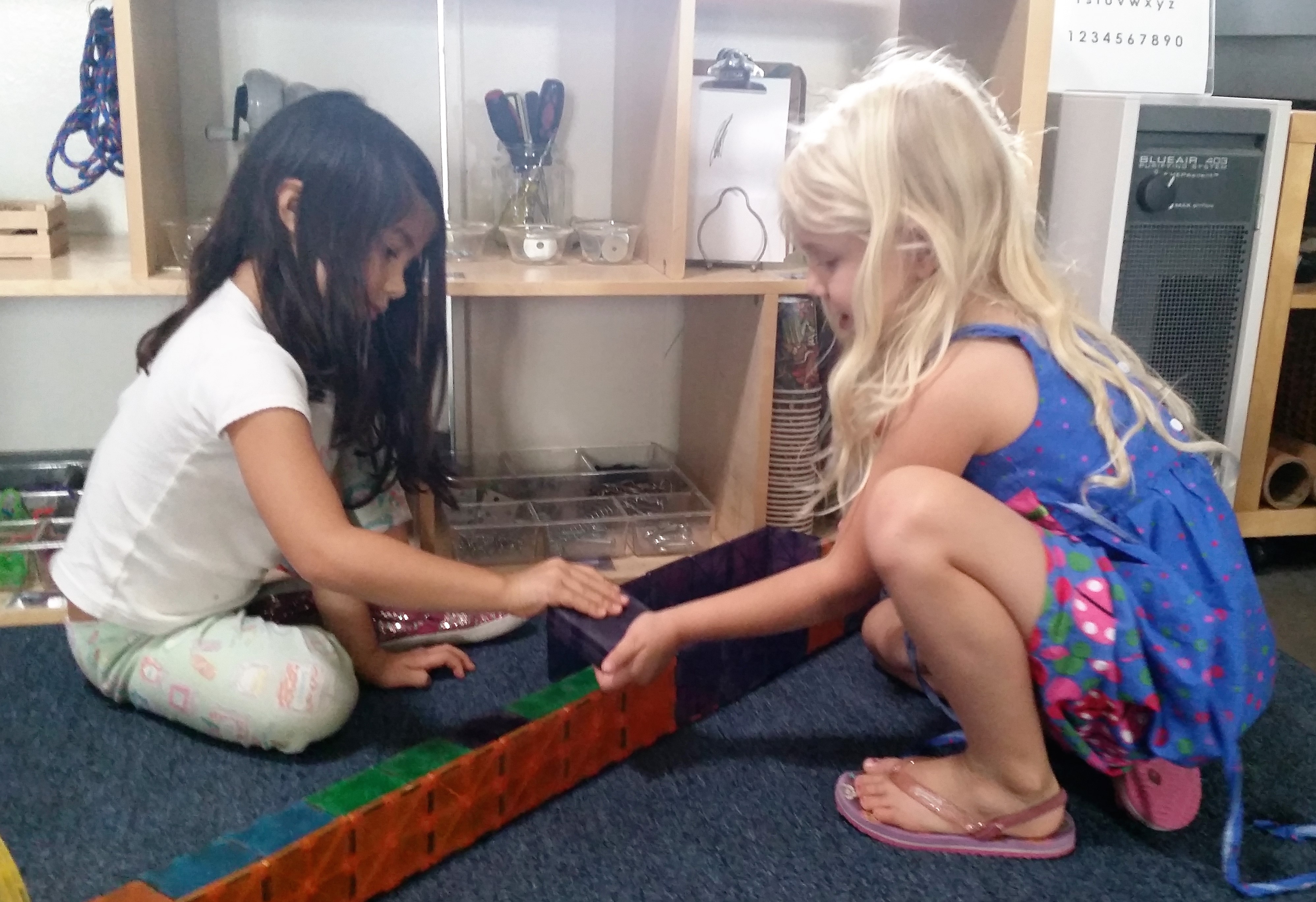 While building the tunnel, Cooper noticed they used all the square magnet tiles around them.