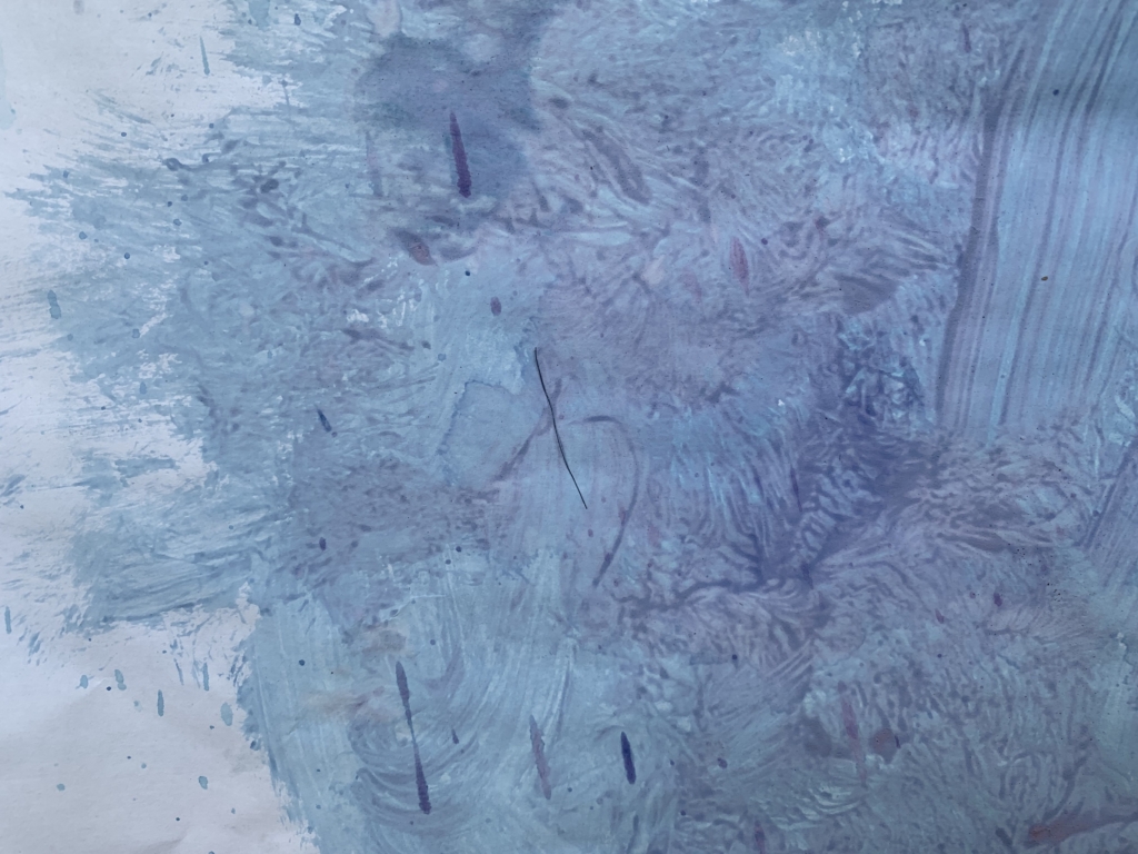 And what strikes me as ingenious in their ocean articulations is their knowledge of layers. When Cindy asked them to represent the ocean, they painted different hues of blue; ocean blue, light blue, and cinnamon blue, and said they were different layers.