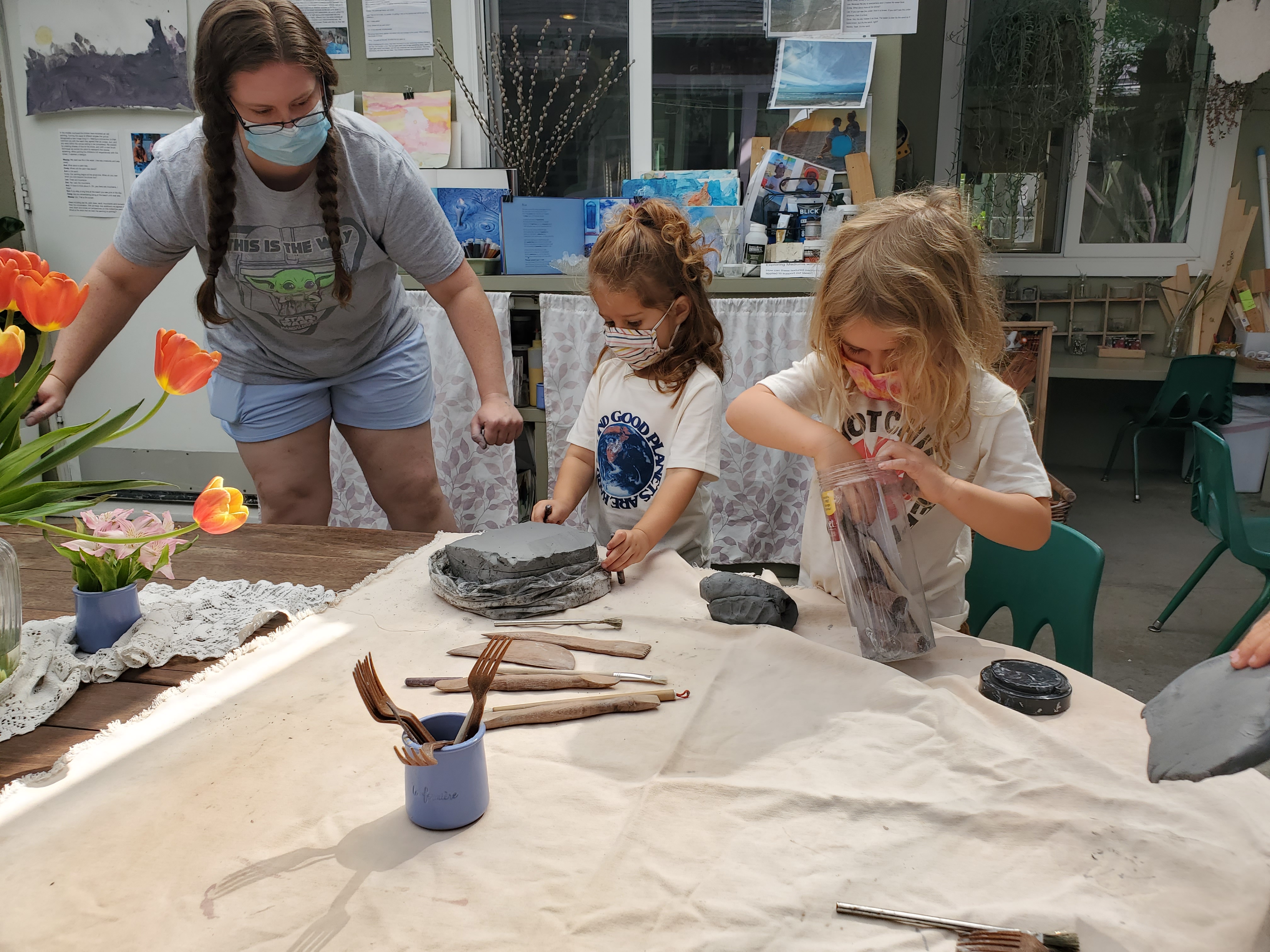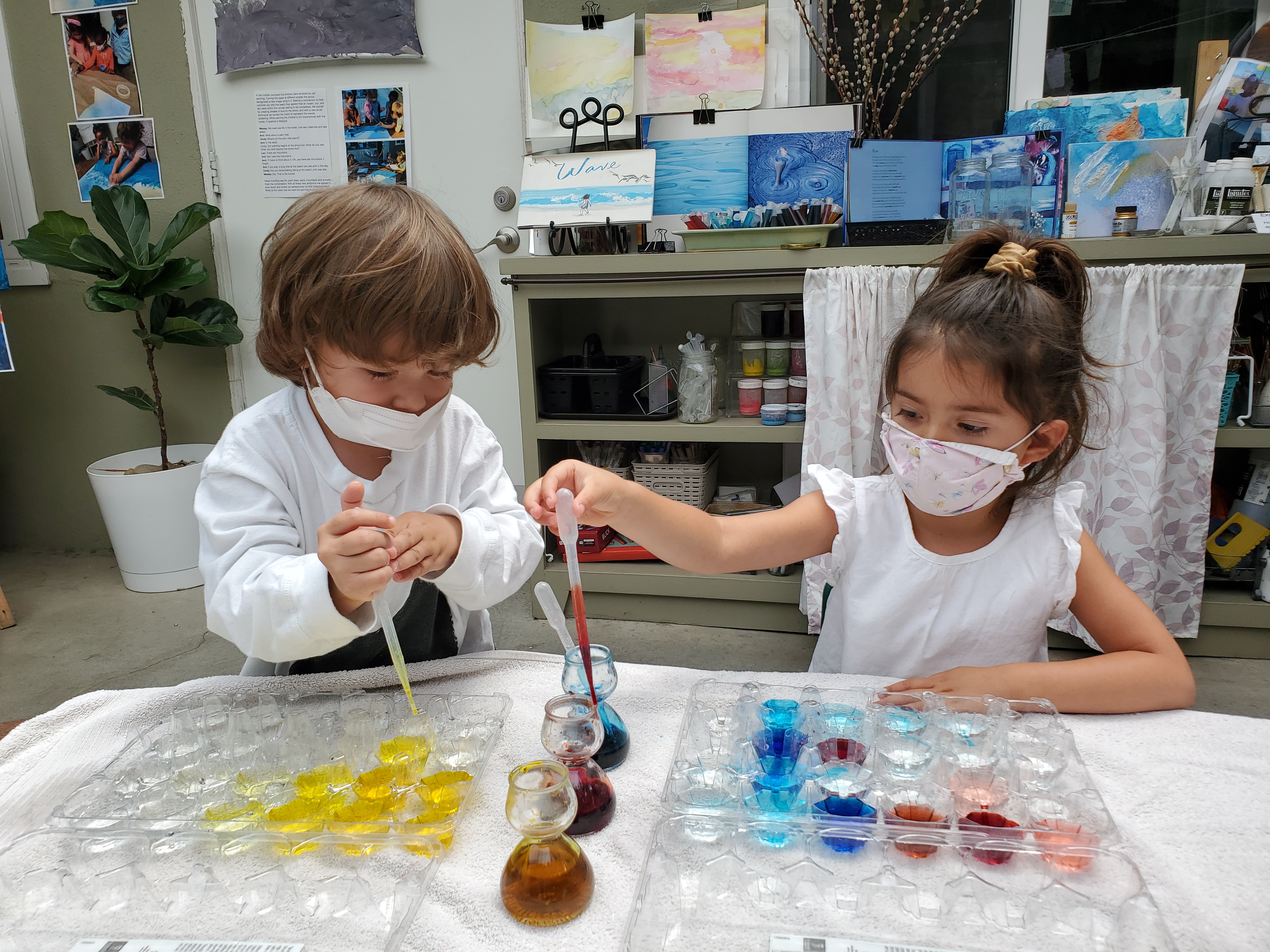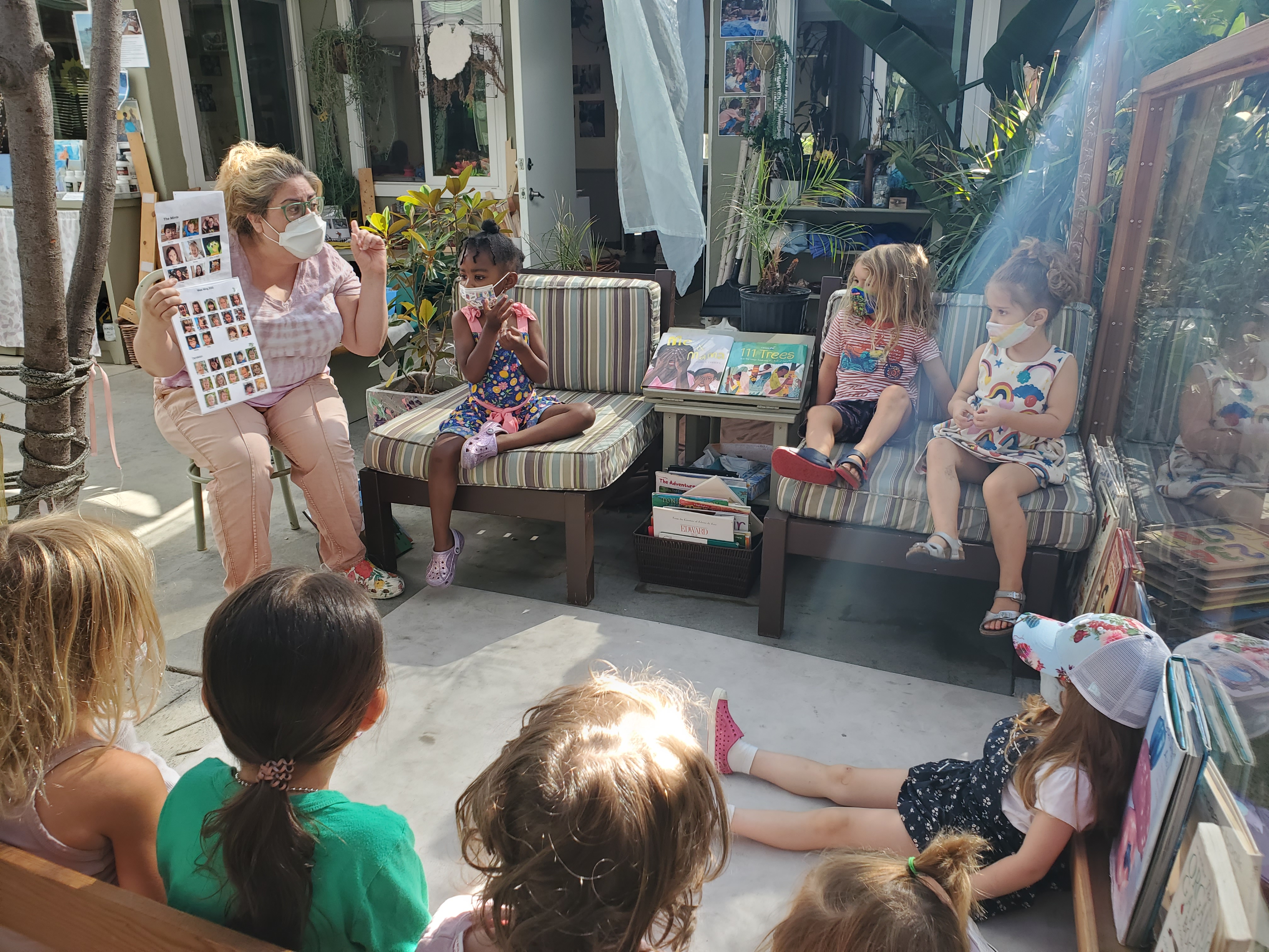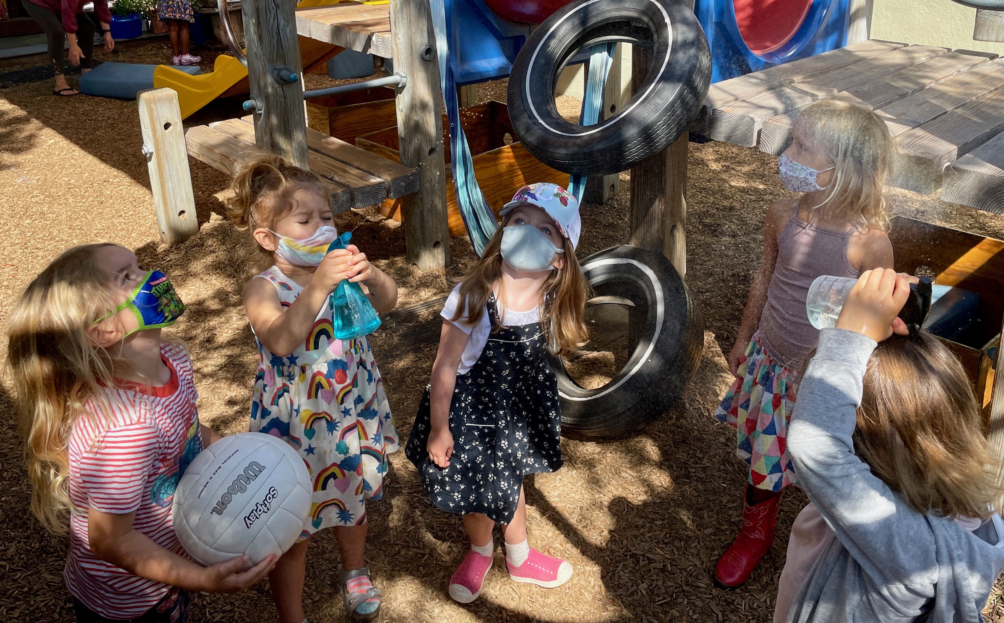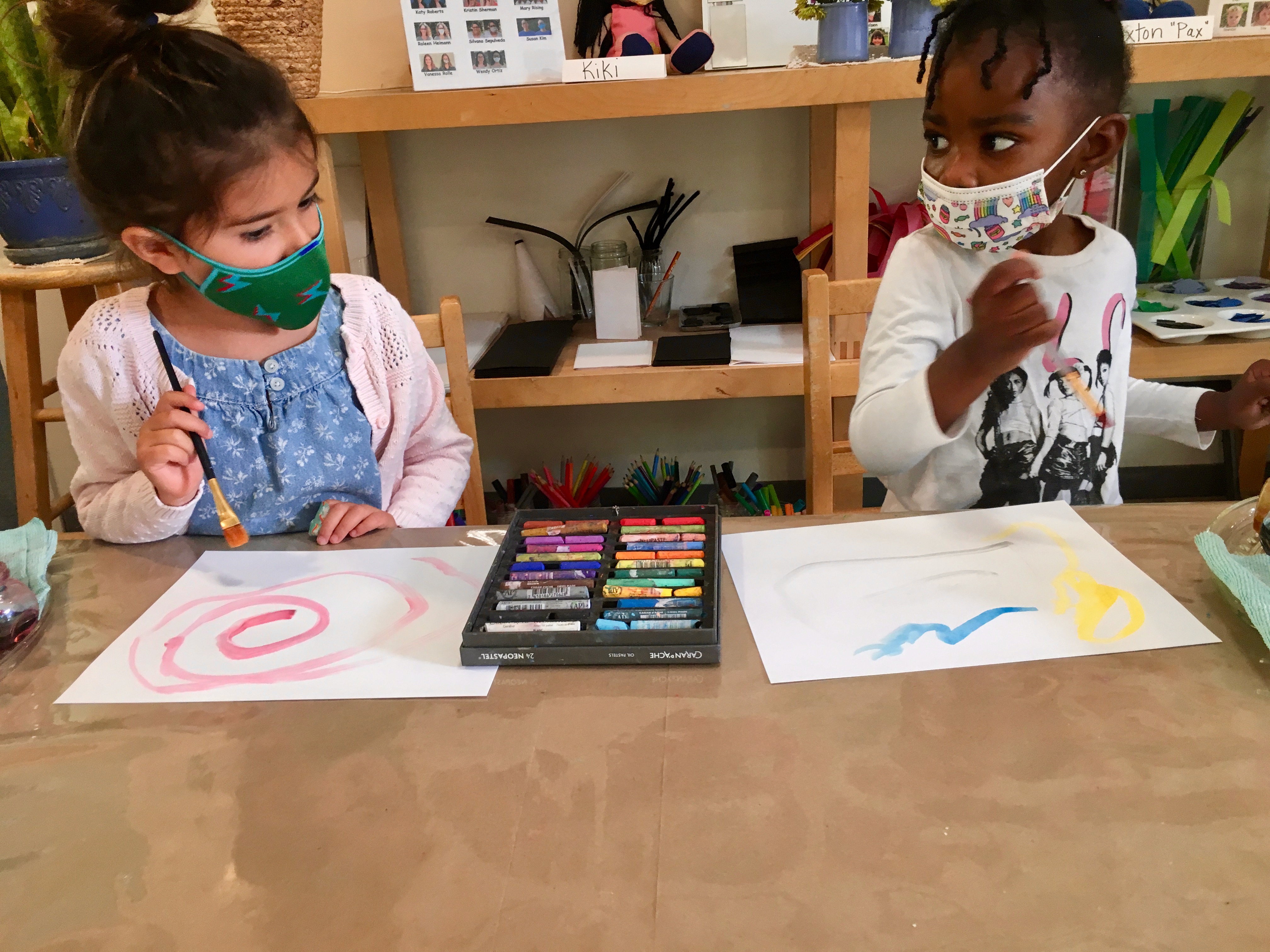 This week, our morning meetings have held space to share with the children that the Cilantros, Dandelions, Mints (NSW online group), and three current East Wingers will be the new East Wing group after summer break. The pod rosters were held side by side as a visual to symbolize coming together. Marley recognized the faces from the Mint group and introduced us to the children from his ‘ipad school.’ Part of our bridging relationships to get to know the children from the other pods has been to read aloud their new identity panels. As Mason’s was being read, hands shot up in the air to express that they too had similar interests. That same morning we welcomed Mason from the Aloe Vera group to our very first real time play experience together. The children were beside themselves when the atelier sliding door opened to greet Mason in the Sand Area. Just a glimpse of our year-long barrier opening filled us all with hope for more connected magical moments. Mason played with the friends, showed us how to go up the bars, and we invited her to the Community Garden to harvest strawberries. We are so excited for Mason to join us in our outdoor play Wednesday and Friday mornings. It will be fun to see new friendships blossom!