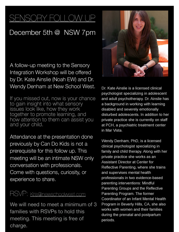 Sensory Integration follow up meeting at NSW 12/5 7pm Announcements Kris / December 2, 2013 / 0 Comments