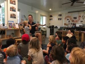 Kenny explained to the children that Rosh Hashanah is a high holiday in the Jewish faith and that it is the celebration of the Jewish New Year. He demonstrated the sound and the three different calls, or sounds, the horn plays: teki’ah, one long blast, shevarim, three broken sounds, and teru’ah, nine staccato notes.