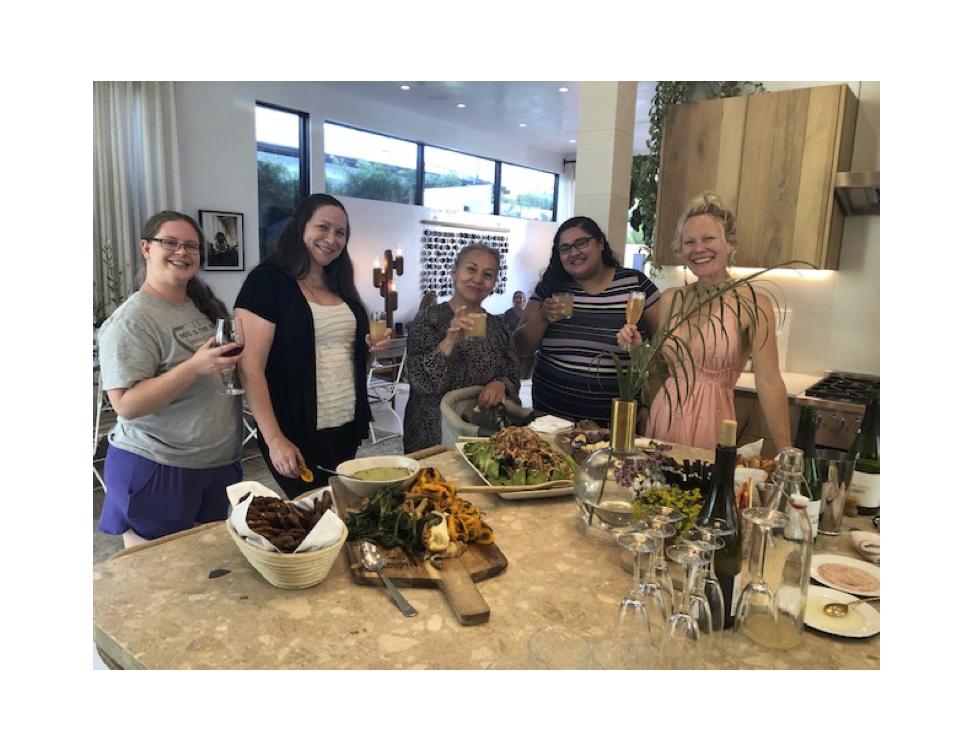Dear Friends. Our Teacher Appreciation Happy Hour/Dinner on Friday was a really special evening and the perfect setting to honor the teachers. Thanks to you all for your heartfelt wishes and gifts and a special thanks to Heather and Jake (Marley/Cilantro), for opening your home to us. With a Butcher’s Daughter feast, complete with a bartender who filled our glasses with Wine, Champagne, Margaritas, and French 75 (our signature drink), flowers by Jelena (Ana/Dandelion) arranged by the children, and a video tribute that brought tears to us all. . .it was a night to remember. So very, very grateful. xoxR