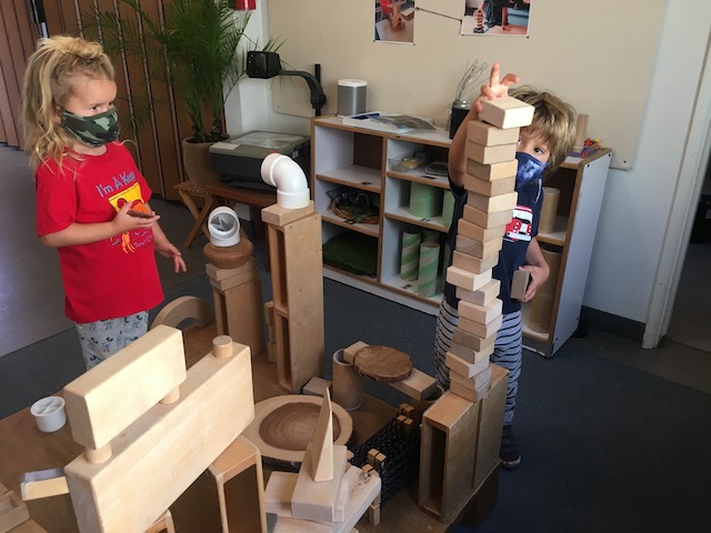 Building spaces can be an exciting environment to gain deeper understandings of scientific inquiry skills including investigating, formulating questions, and discovering the joy in being a builder. The play in building spaces cultivates our NSW culture of constructing and communicating explanations, collaboration, and holding space for other ideas. By inviting the Dandelions to wonder with us, we are building a community in which we welcome other perspectives that may inform future connections.