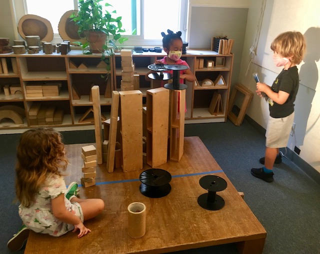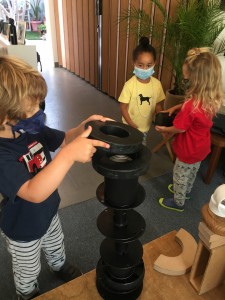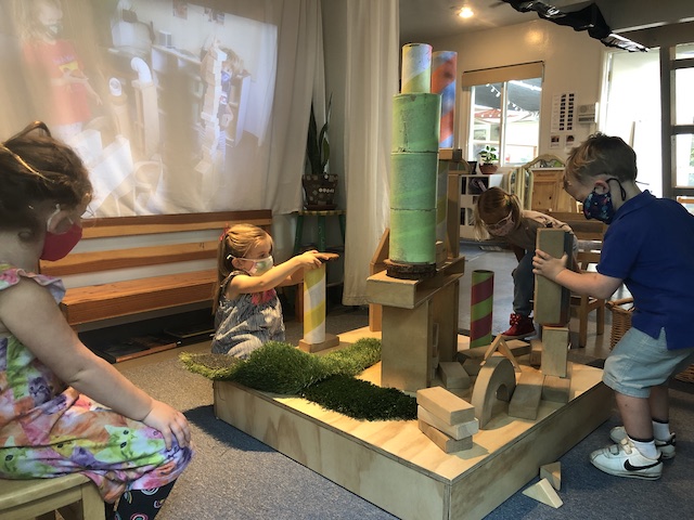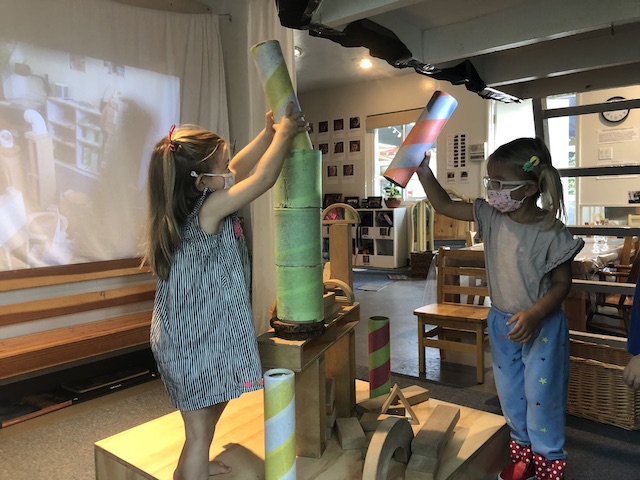 The small group of children from the Dandelion group each took turns adding blocks and other building materials to the platform.