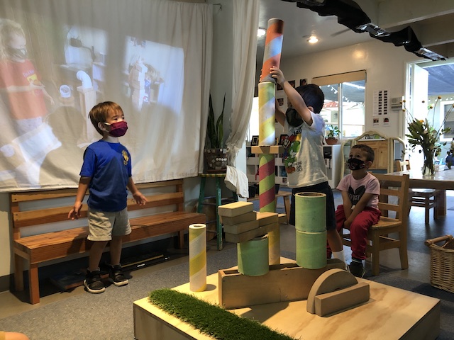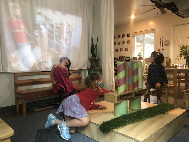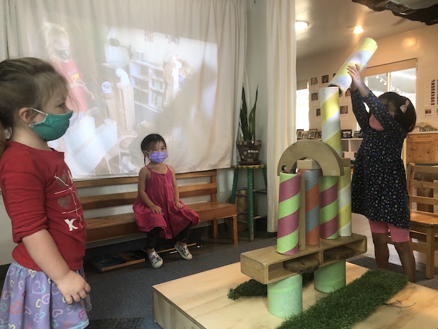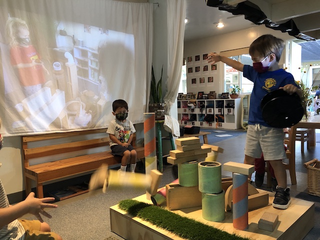 We’ve been noticing that both the Cilantros and the Dandelions are more curious about the children on the other side of the West Wing: “Who’s over there?” “What are they doing?” “What are they playing with?” The West Wing teachers wondered how we could use this natural curiosity to build connections, bridge ideas, and inspire investigations.