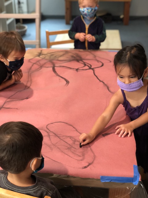 Later that morning, a second group of children came together at the table with the charcoals.