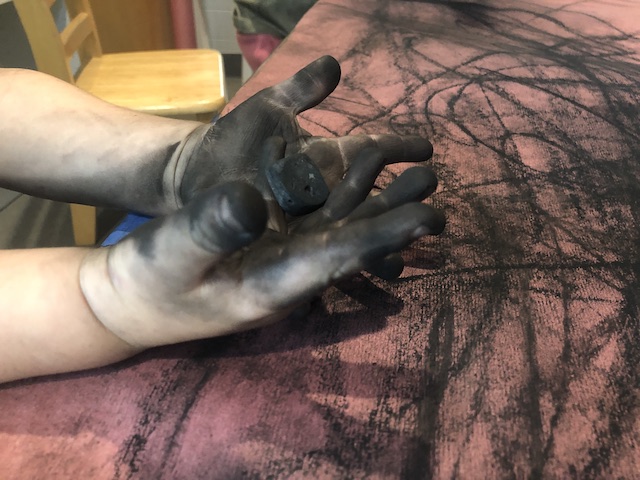 Later that morning, a second group of children came together at the table with the charcoals.
