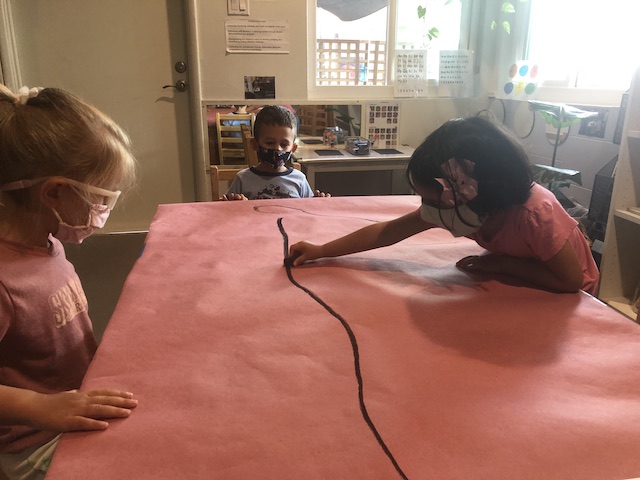 As the charcoal line moved across the shared paper, we saw how in each small group the children were able to move from individual ideas about “my” line to shared ideas about “our” lines. They negotiated not only for the charcoal but also with each other’s ideas. This type of reciprocal exchange lays the groundwork for children to have success not only as strong participants in our classroom but also as active, engaged citizens in our community.