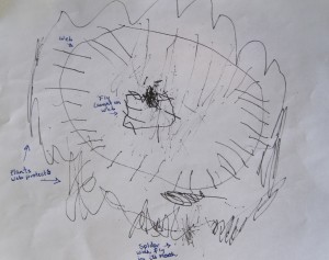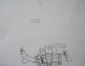 ” I think the spider webs are good. They connect to the plants and when it rains, the web gives the plants water.” –Hanami 4yrs old