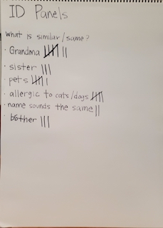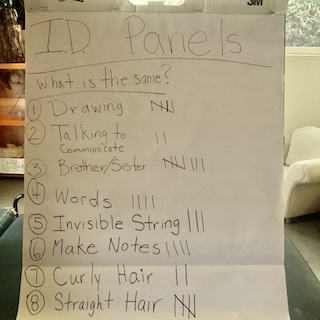 Amy: They both talked about brothers. That’s definitely a similarity and Uma noticed similarities with the children’s ID panels we read yesterday.