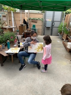Bringing artifacts of the children’s work from previous days to deepen the connections they made to their learning reinforces their knowledge. The Basil group is intentionally choosing artifacts that show children’s knowledge of ecosystems: They had demonstrated the knowledge that roots are generally underground and the children filled in what their surroundings were: worm families.