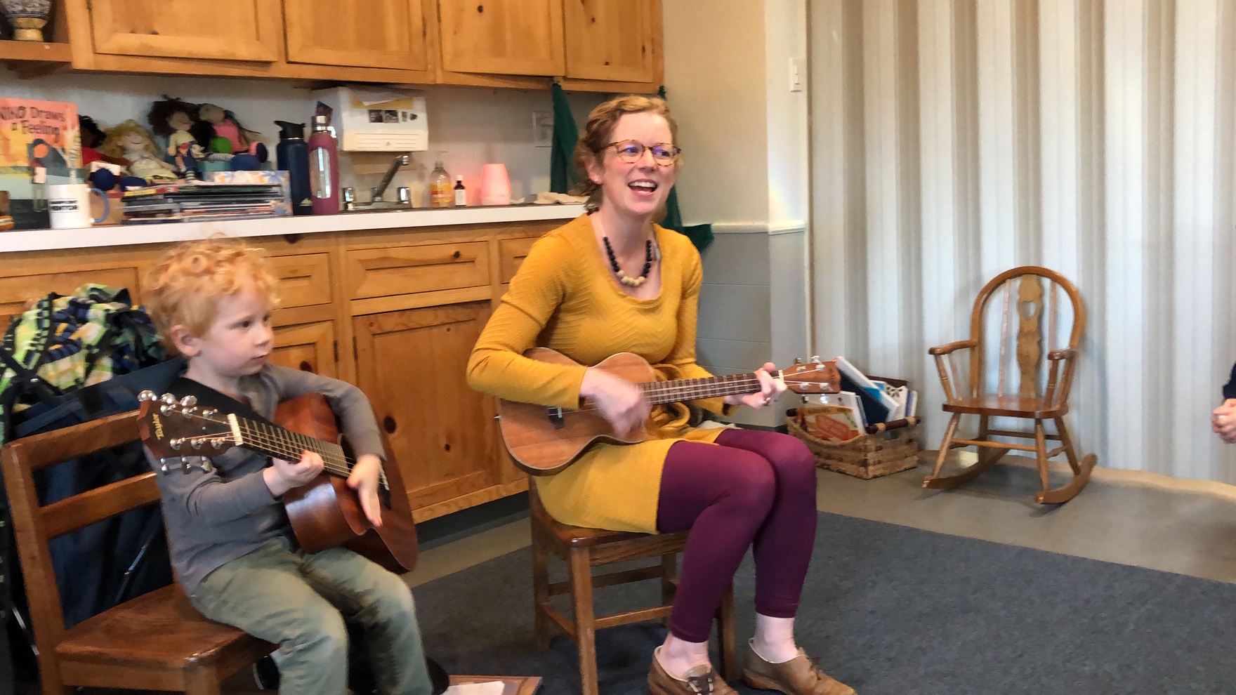 Christoph’s mom, Hillary, is a local librarian and came to play borrowed ukuleles and sing songs at morning meeting.