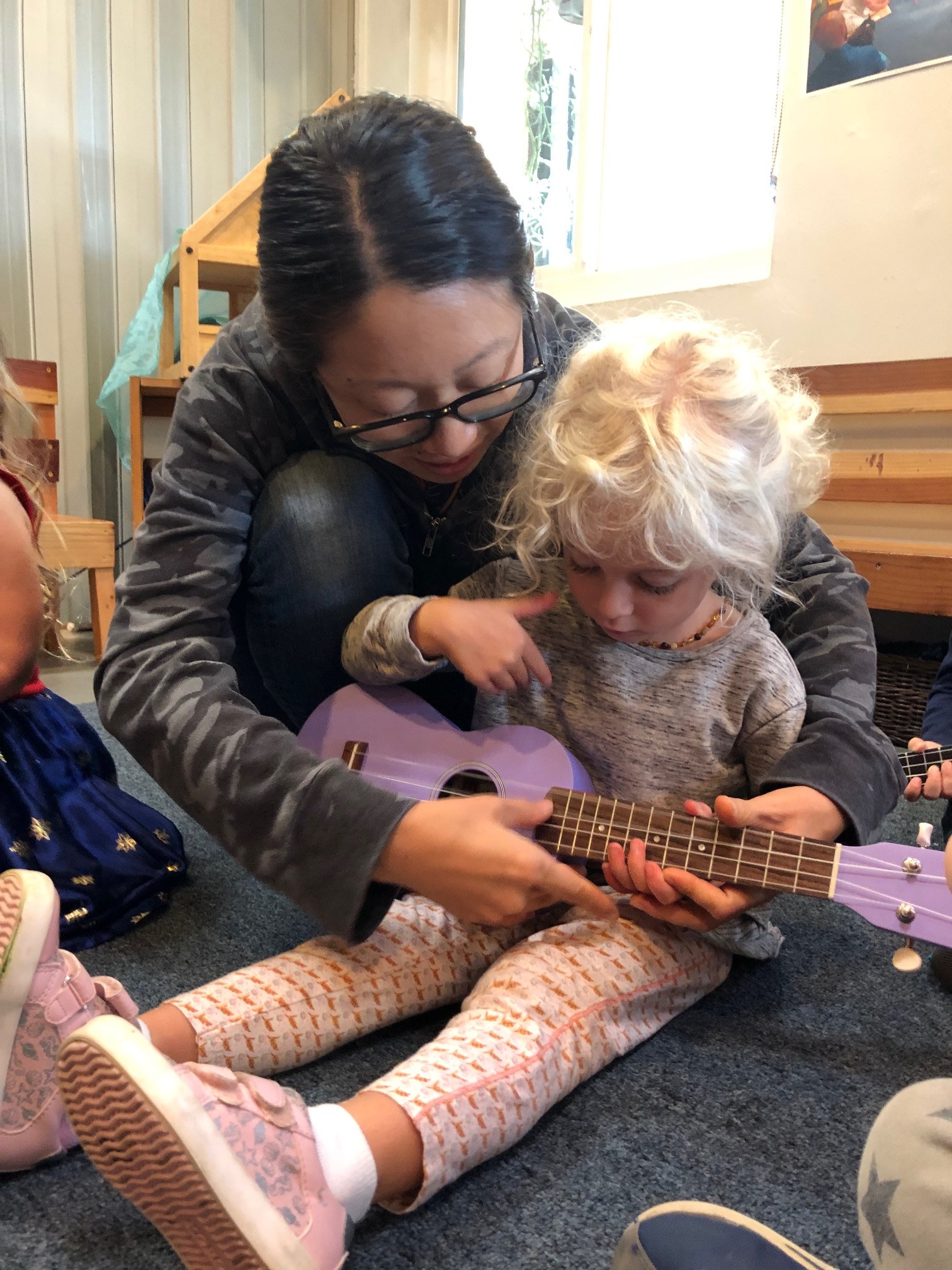 Christoph’s mom, Hillary, is a local librarian and came to play borrowed ukuleles and sing songs at morning meeting.