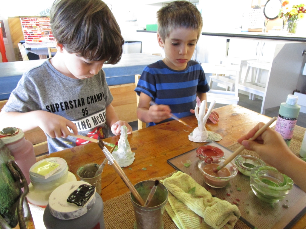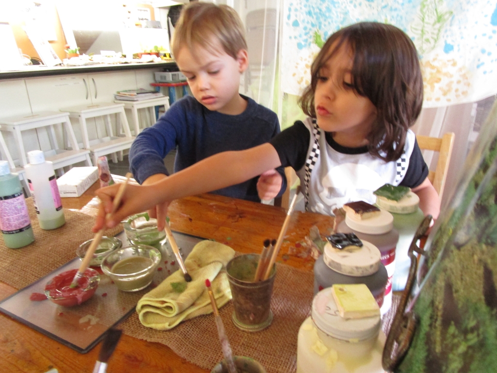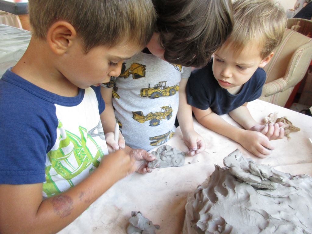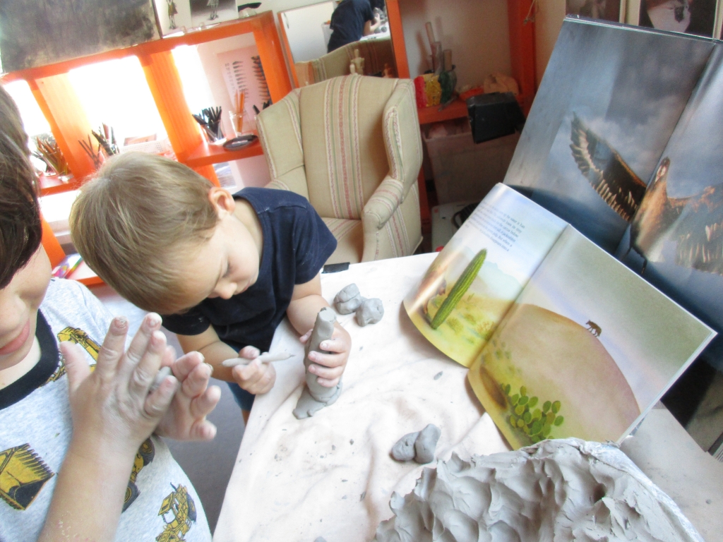Sawyer, Luca, and Eli join Phedon in the Atelier to work on sculpting clay cacti for a habitat. As they work they incorporate vocabulary learned from our Field Guides: