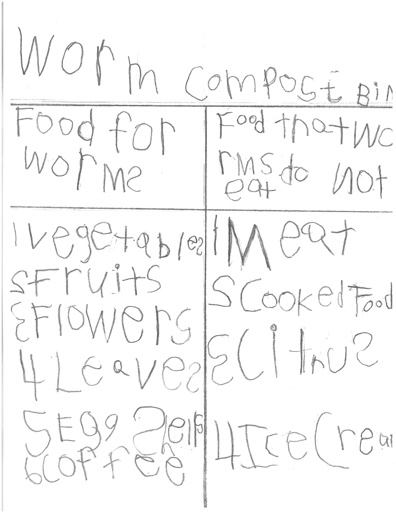 The children worked on this sign stating how to take care of the worms and what food to give and not to give them.