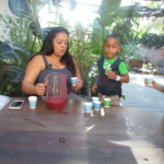 Mica’s parents, Anna and Marc (EW), made smoothies with the kids with the option of tahini!