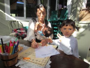 It was Caitlin’s (EW) and Everly’s (WW) birthday this week. Caitlin’s mom Sandra and Everly’s parents, Emma and Aric, read and donated books from our Amazon wish list called, Hattie and Hudson and Duck Duck Moose at circle time. This book and lots of others (many donated by Laura (Ava EW) are ready for check out at the library in the kitchen.