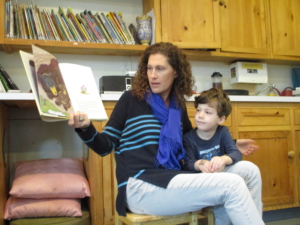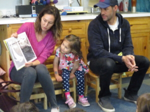 Eli (with mom, Jaclyn WW) shared the story of Purim in celebration of the Jewish holiday.