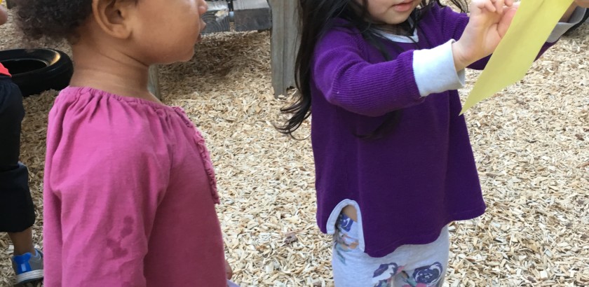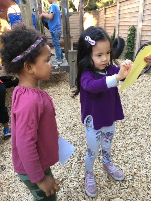 Our main focus in the front yard this year is to support the children in recognizing the energy we constantly bring to the spaces. To practice this, we stop and support one another even when we might not be part of the hurt person’s experience. It is important to be mindful of the energy of the space in which we work and to be there and see if we might be able to contribute something that might support the situation. In this instance, Archer organically stopped and supported Naomi. Zoe and Isaac, too, took the time to create a drawing for Naomi when they were over 10′ away from her in the Paper House. They felt her stress which switched their work focus into creating a caring gesture. Naomi’s emotions gave all of us the opportunity to practice our various levels of empathy. – Teacher Adriana & Kristin