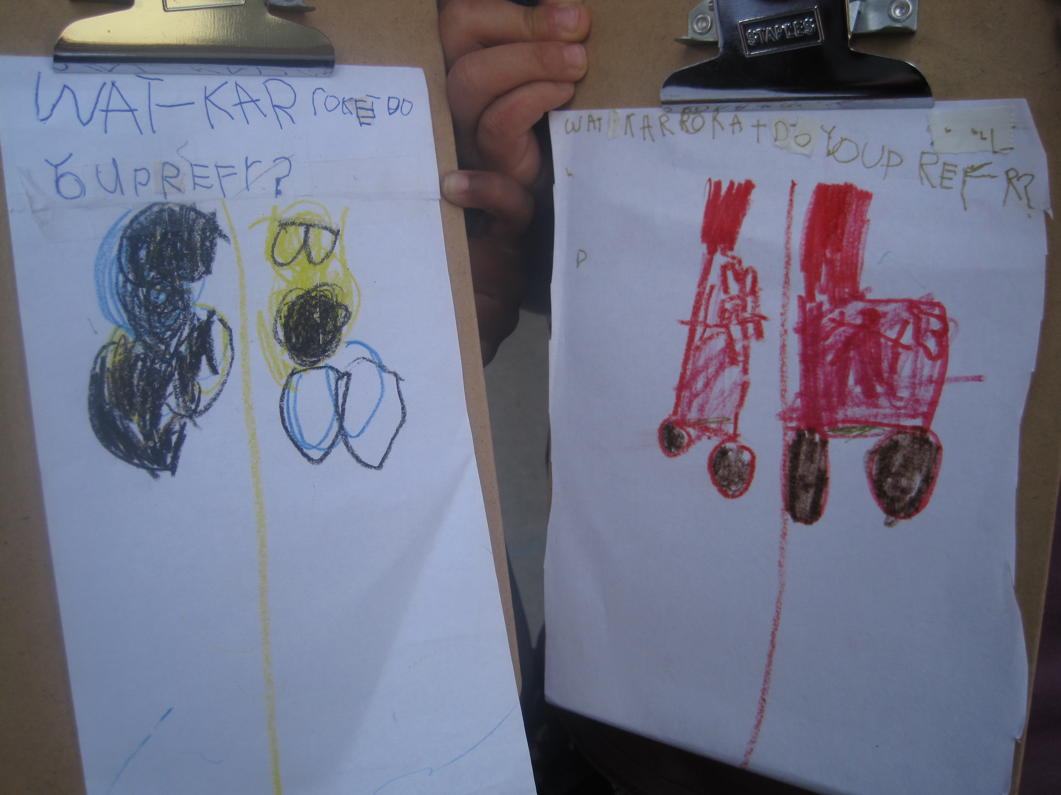 Yoli: “Why do you think you crashed?” I wondered what else we can do. The two girls suggested that we put the old ones away and keep the new ones. I wanted to involve the larger community and we created a survey with a checklist to find out which cars should be put away.