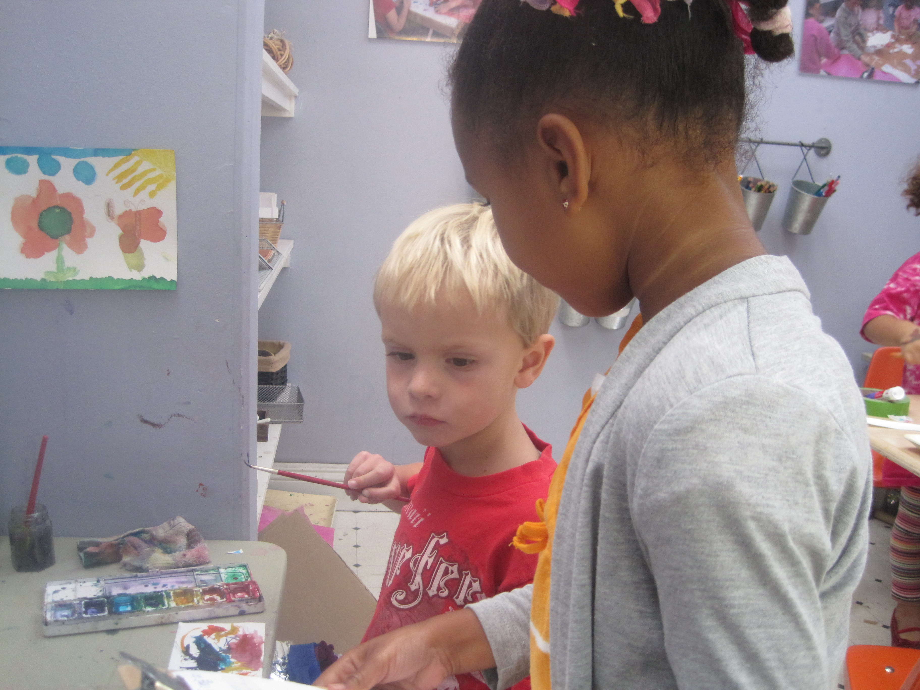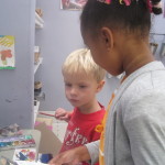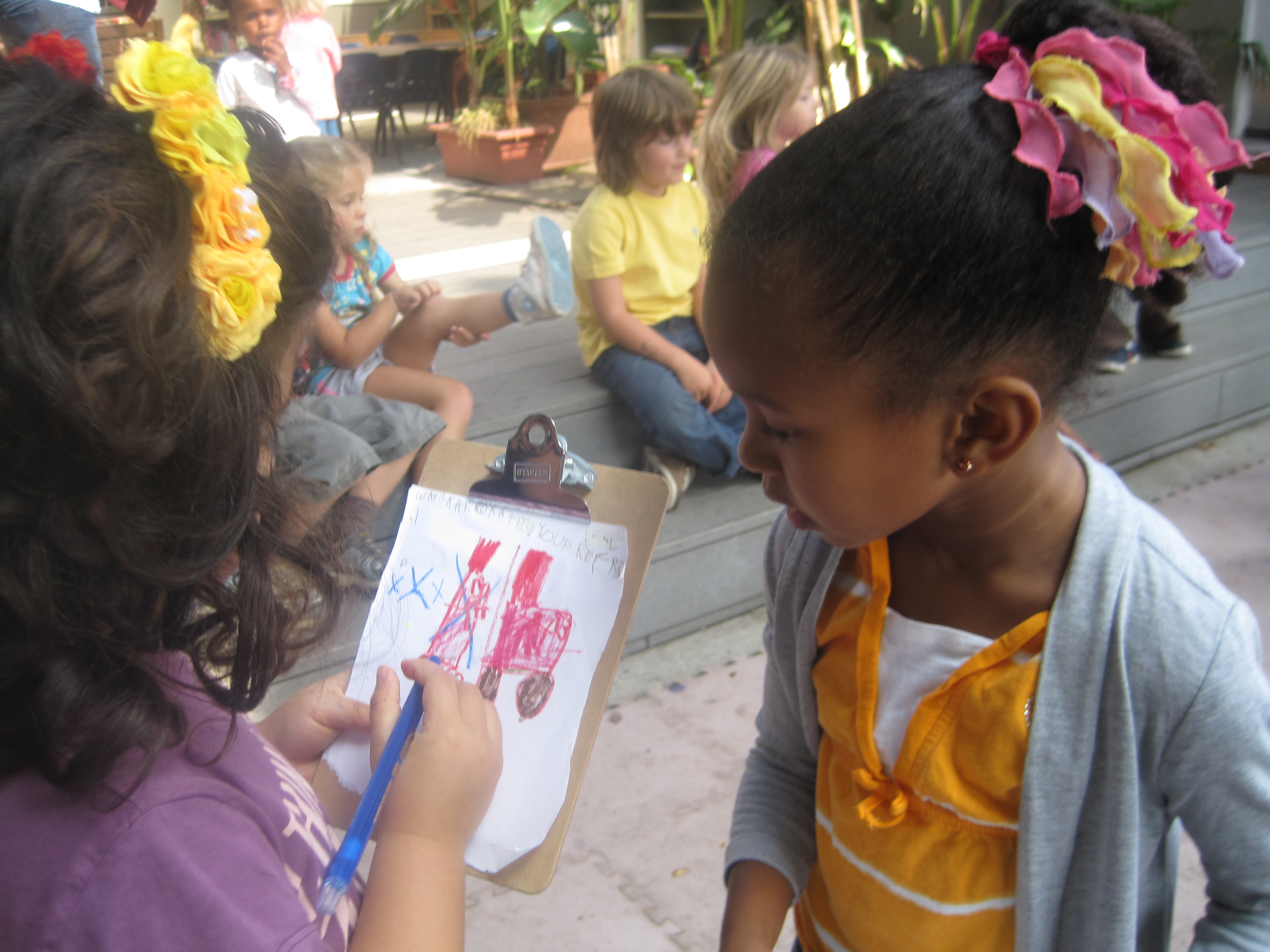 Mia: “Laurel, I will draw the red car rockets. I am going to use the pink marker for the old one because I need a lighter color.