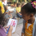 Laurel: “I am going to draw the yellow and blue one. Don’t forget the black for the steering wheel!”
