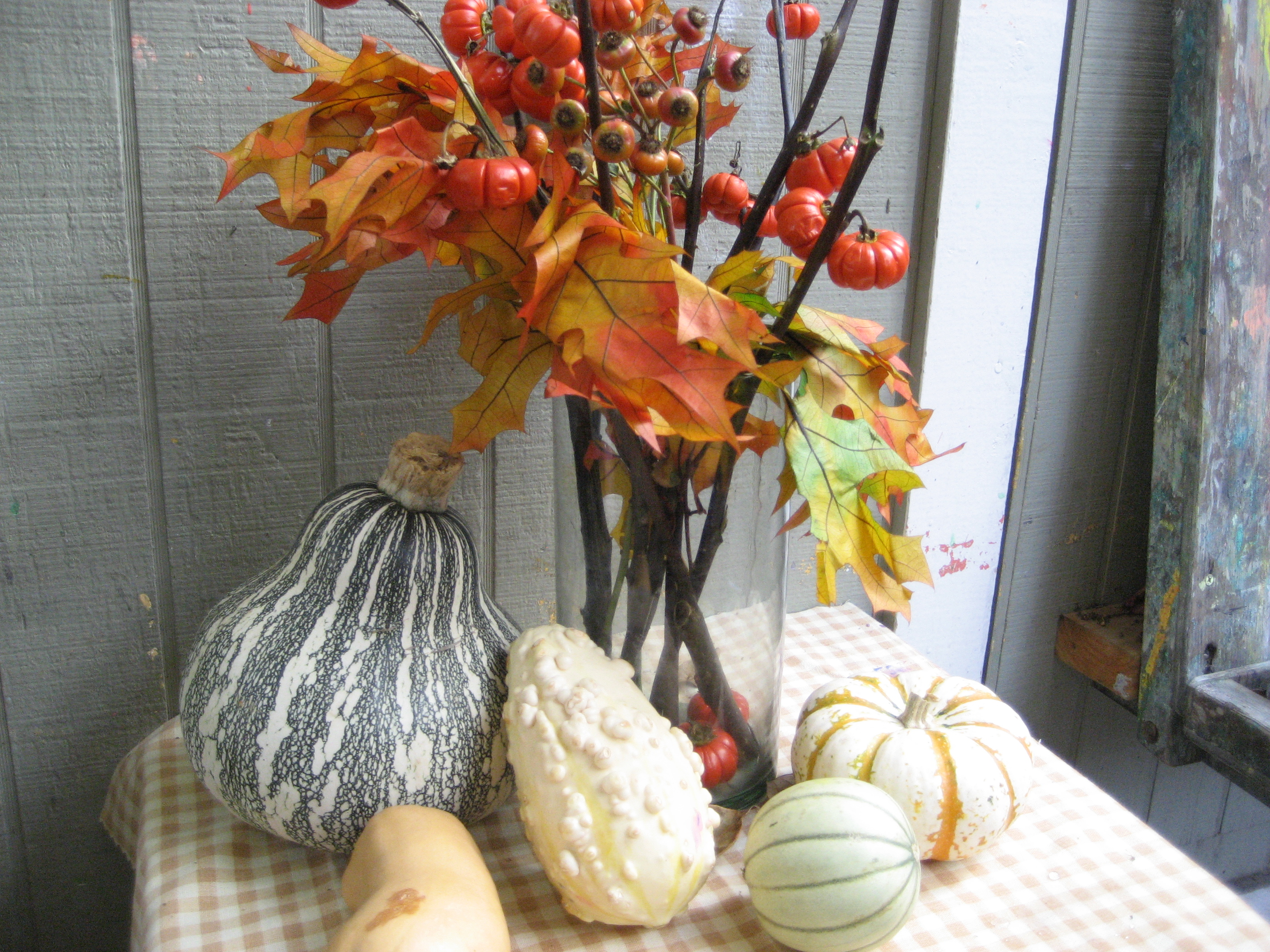 Kris: “Take a good look at this arrangement. What colors do you see? Hold the gourds in your hands.”