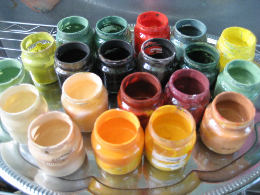 Georgia: “I need the cream and the yellow.” She takes them back to her easel and asks me to hold the gourd for her.