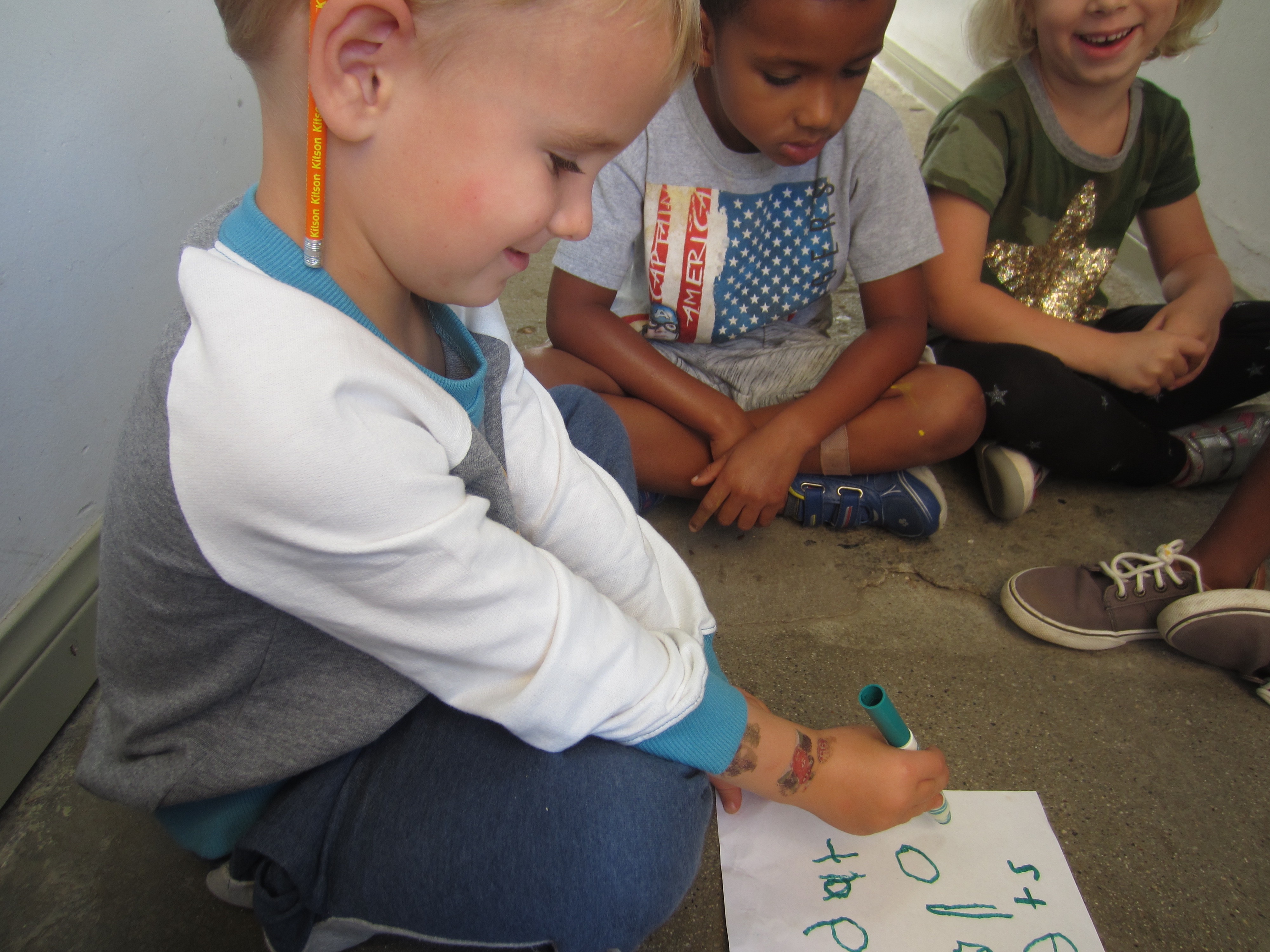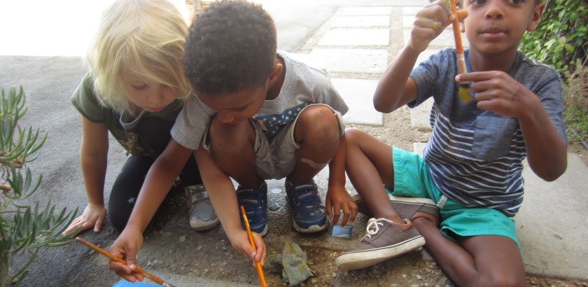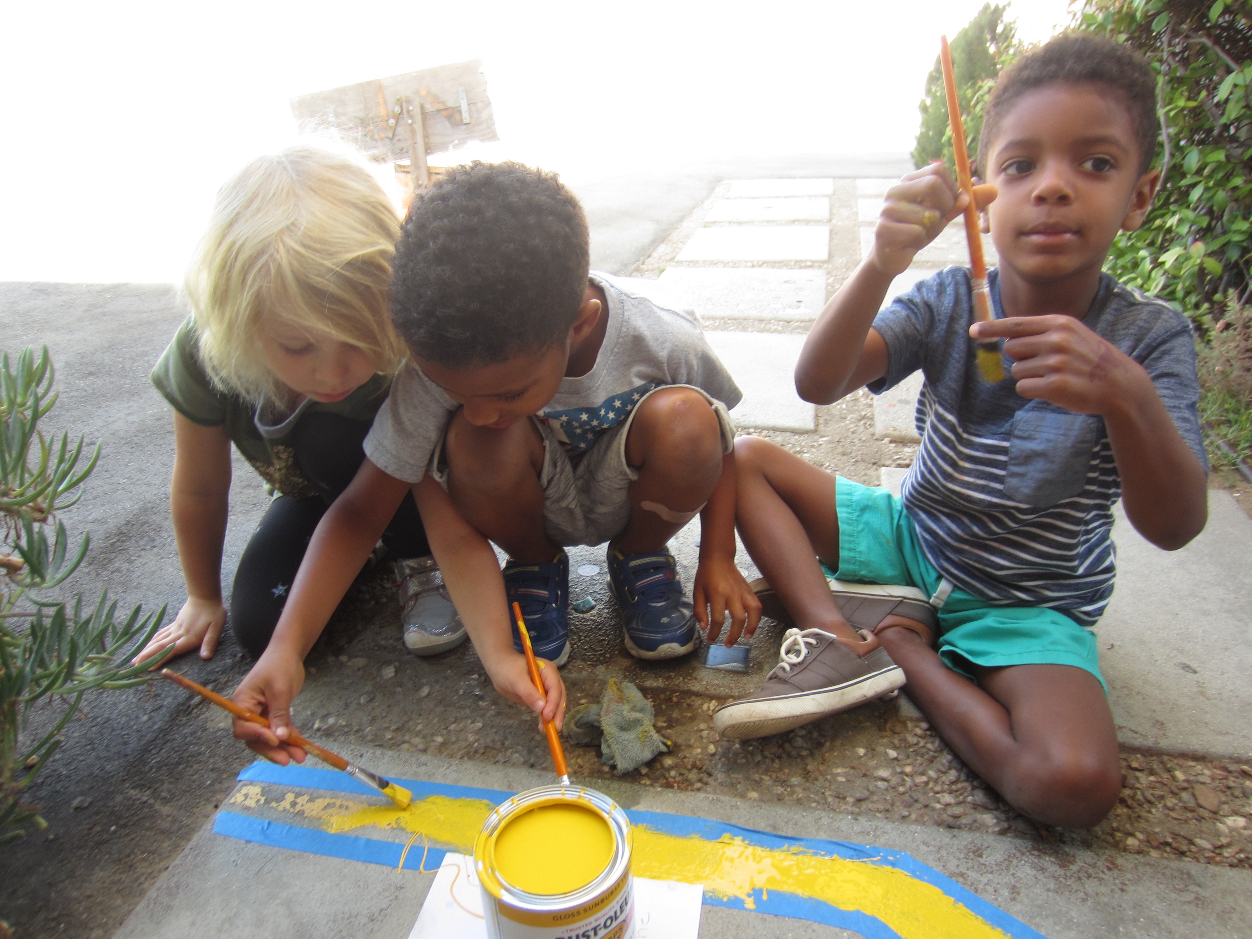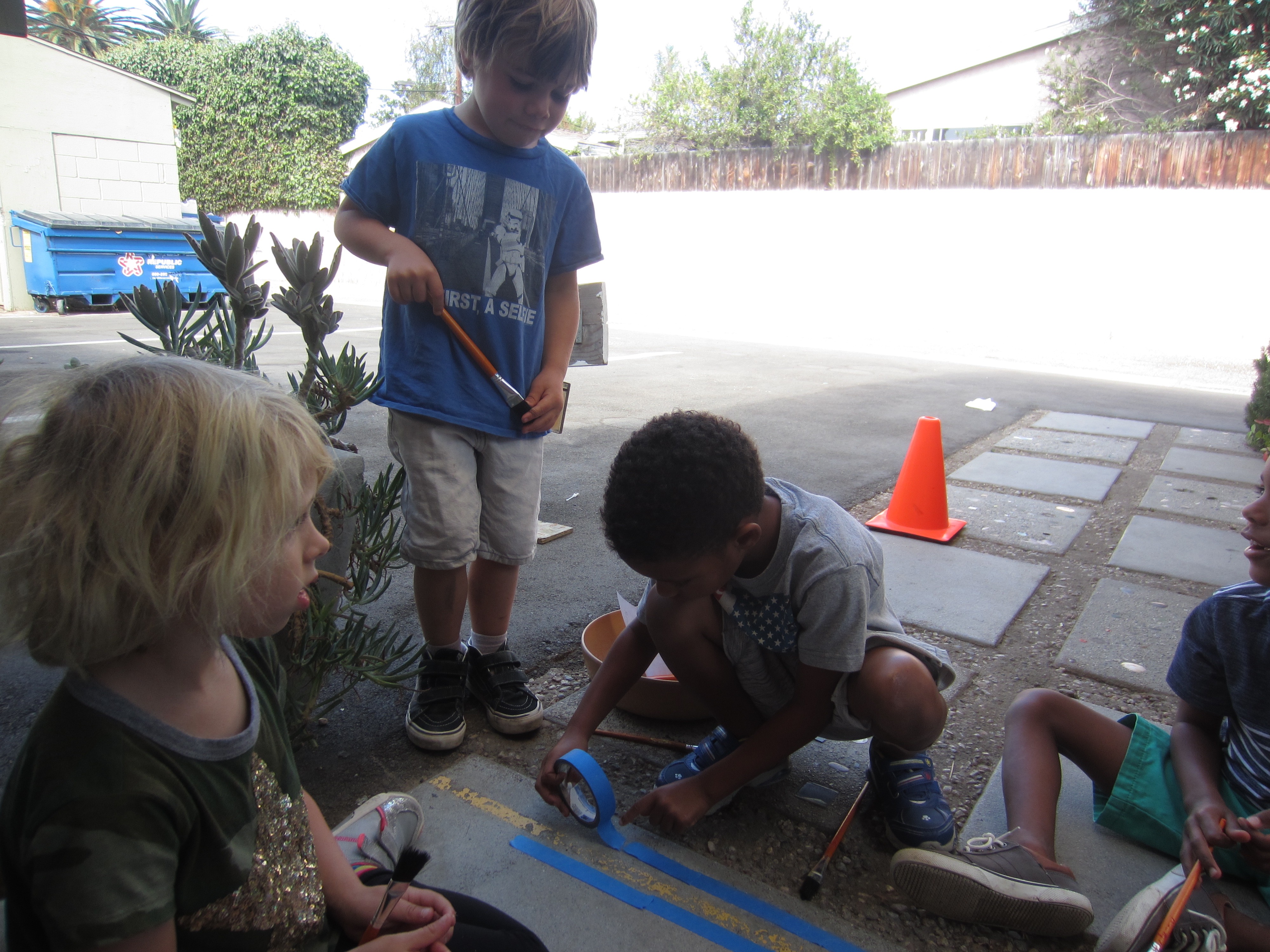Valuing community, we include children in many opportunities to contribute to our whole school. For example, some West Wingers worked on assembling stools for the Atelier and last week a few East Wingers volunteered to paint our yellow caution line near the alley door. This group went a step further and wanted to leave a written message for the children and for the adults.