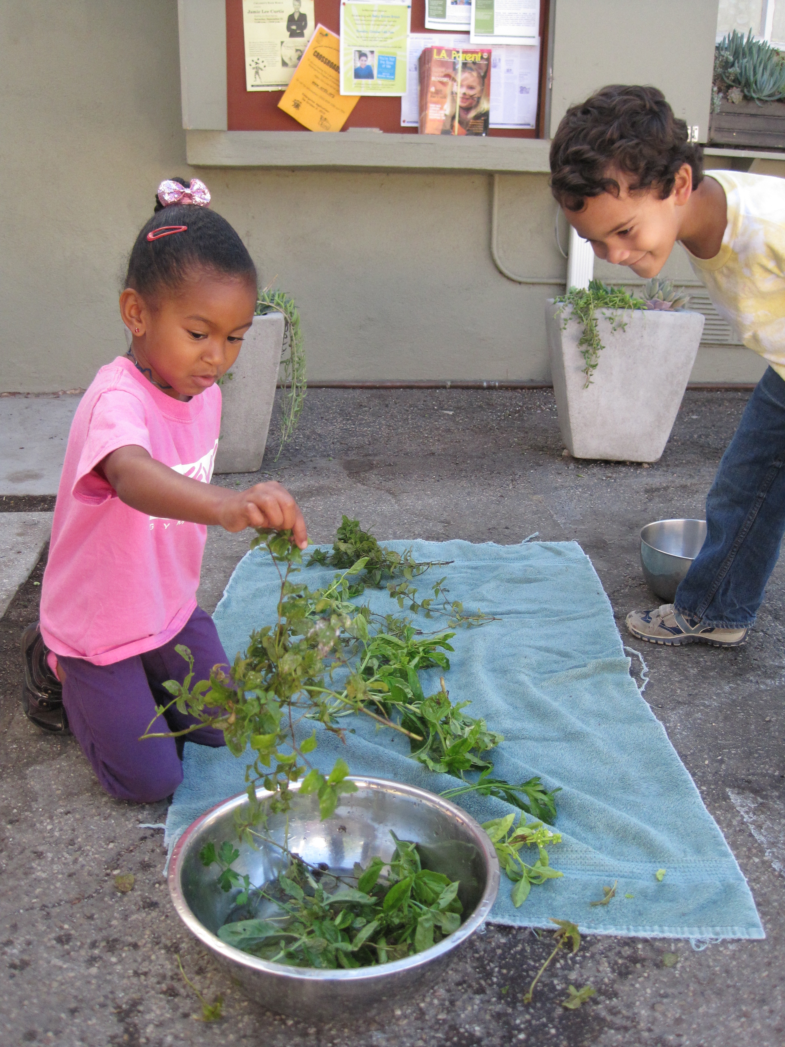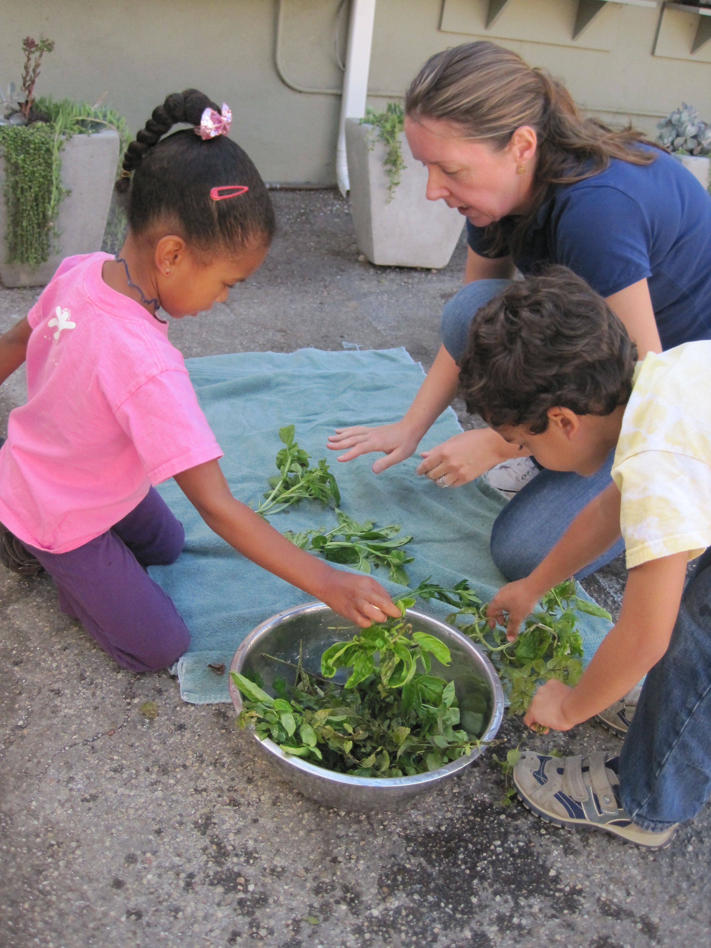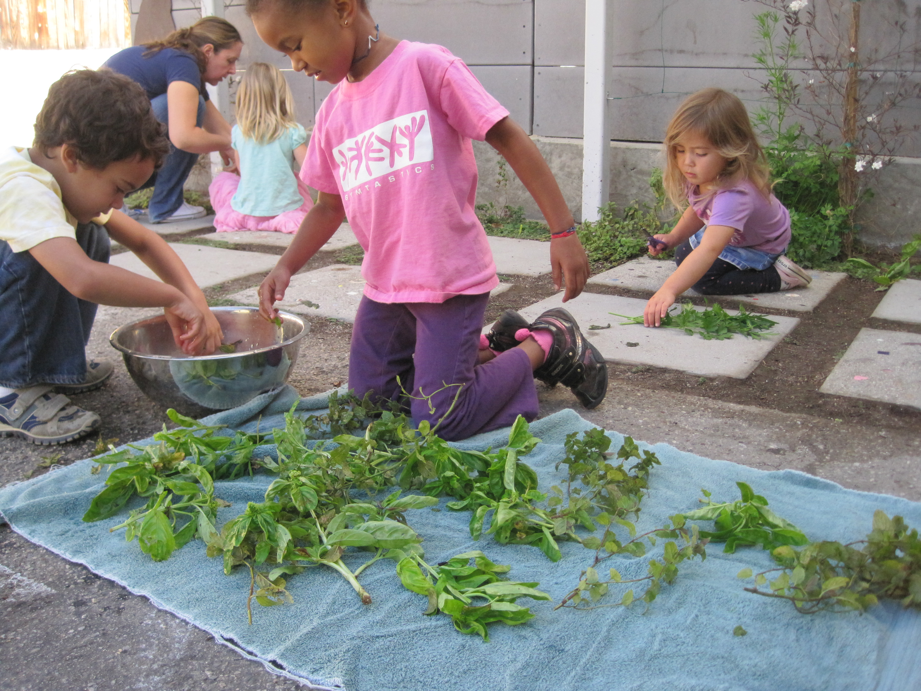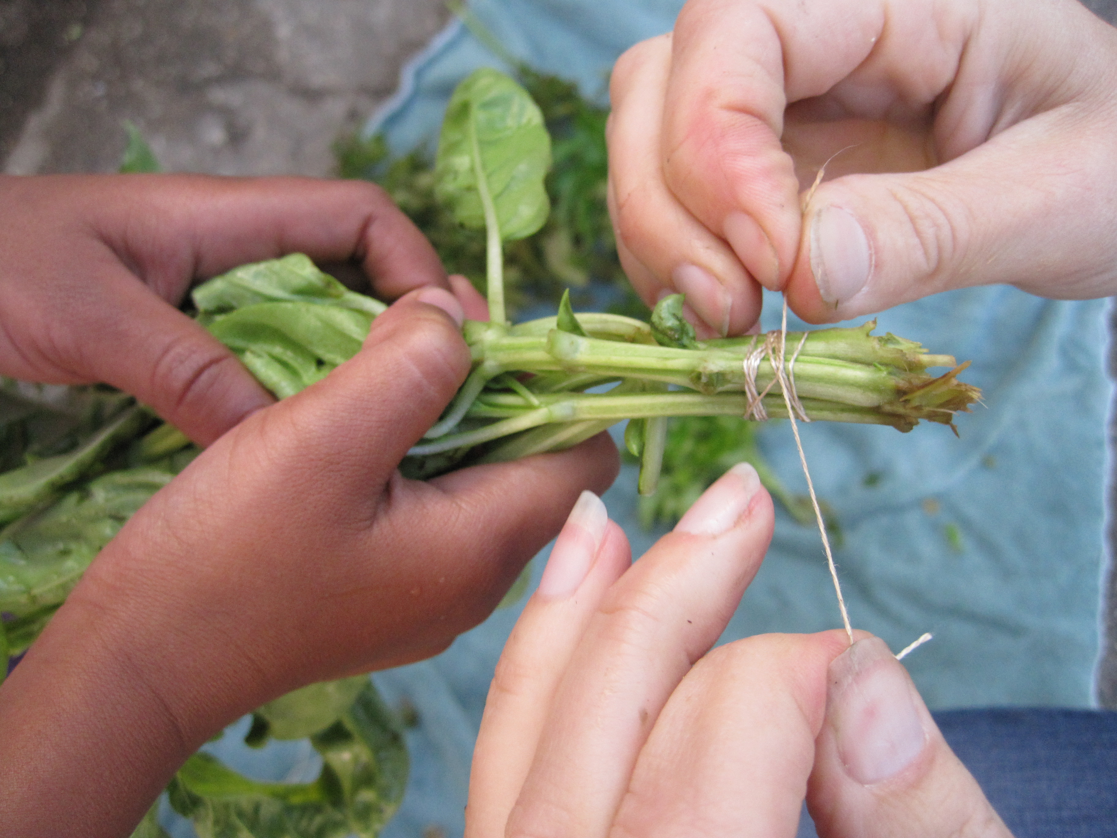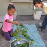 Next they prepared the herbs. The children washed the herbs and laid them out to dry. When the time came to sort, we asked how they would identify each herb.