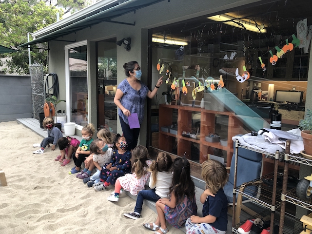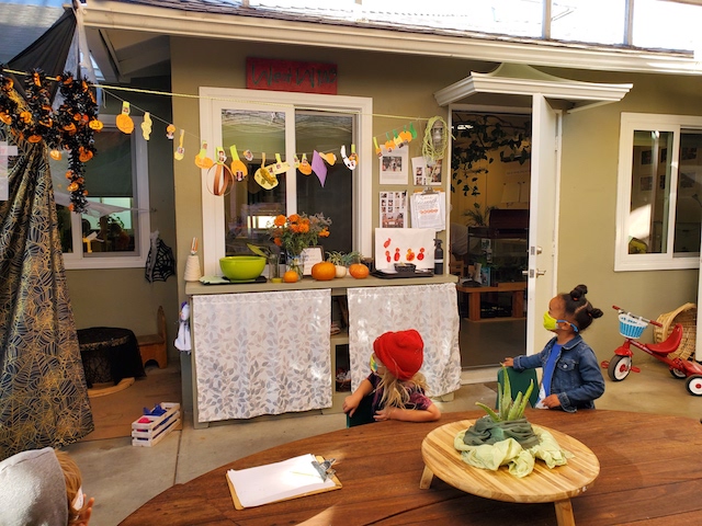 The Cilantro group got a fun surprise in the Sand Area when we noticed a strand of Halloween decorations that the Aloe Vera group created and left for us to find. We transferred it to the Middle Courtyard to add to our Haunted House. At our reflection meeting, we discussed how we could show our gratitude and the group agreed that we should write a thank you note.