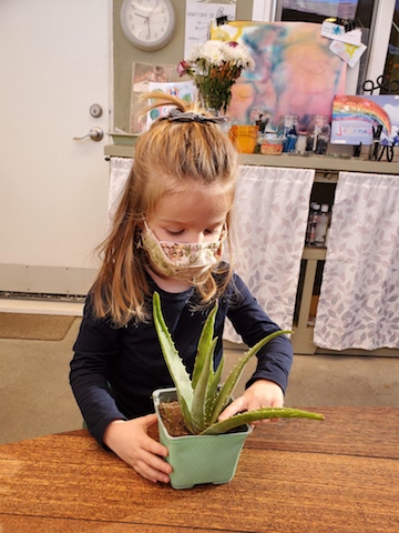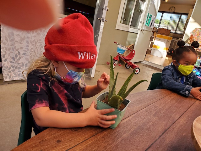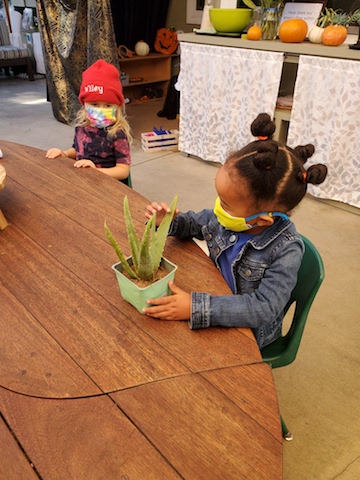 Cindy: When we made paintings of pumpkins, we noticed their shape. What do you notice about this Aloe Vera plant?