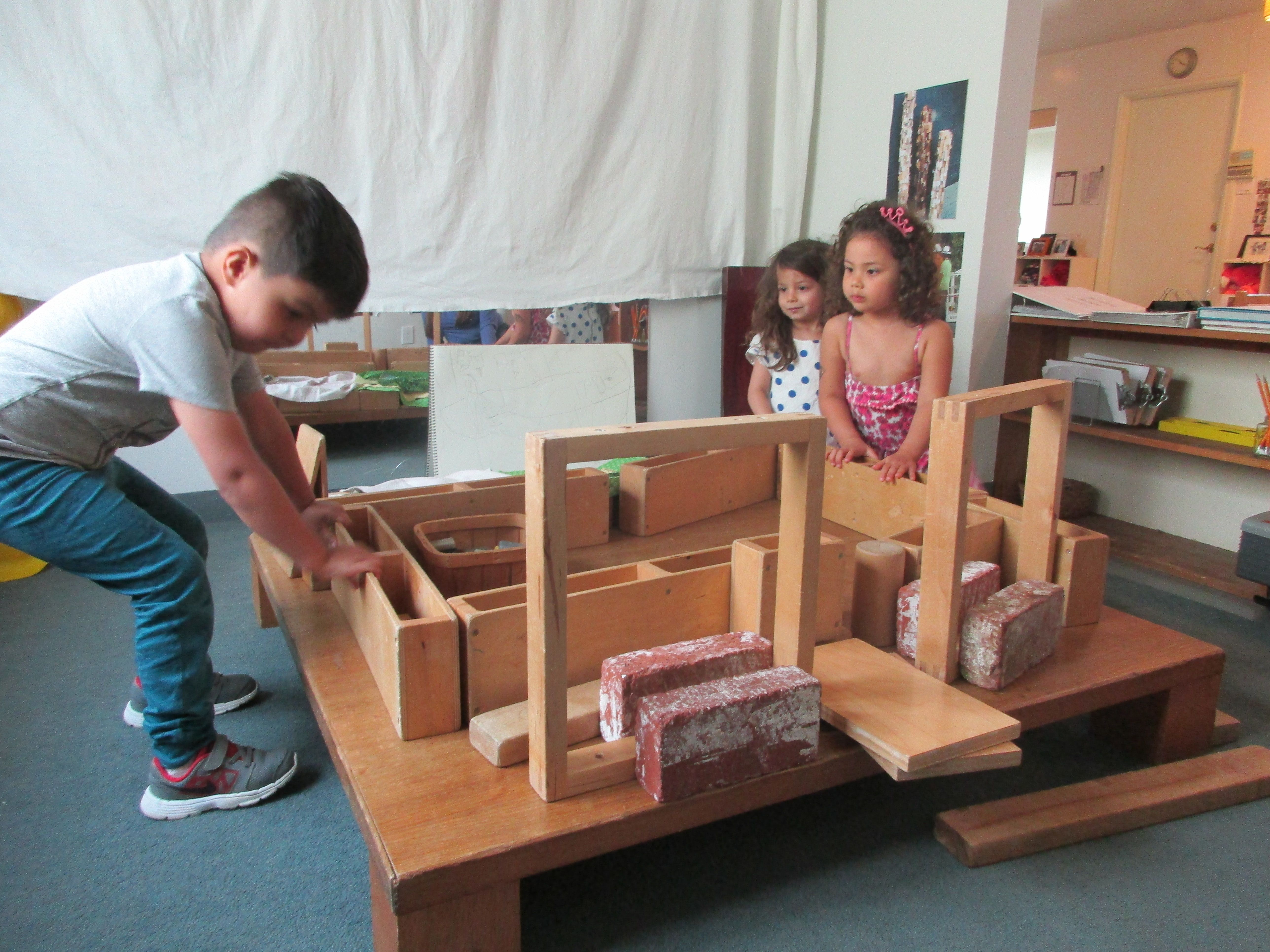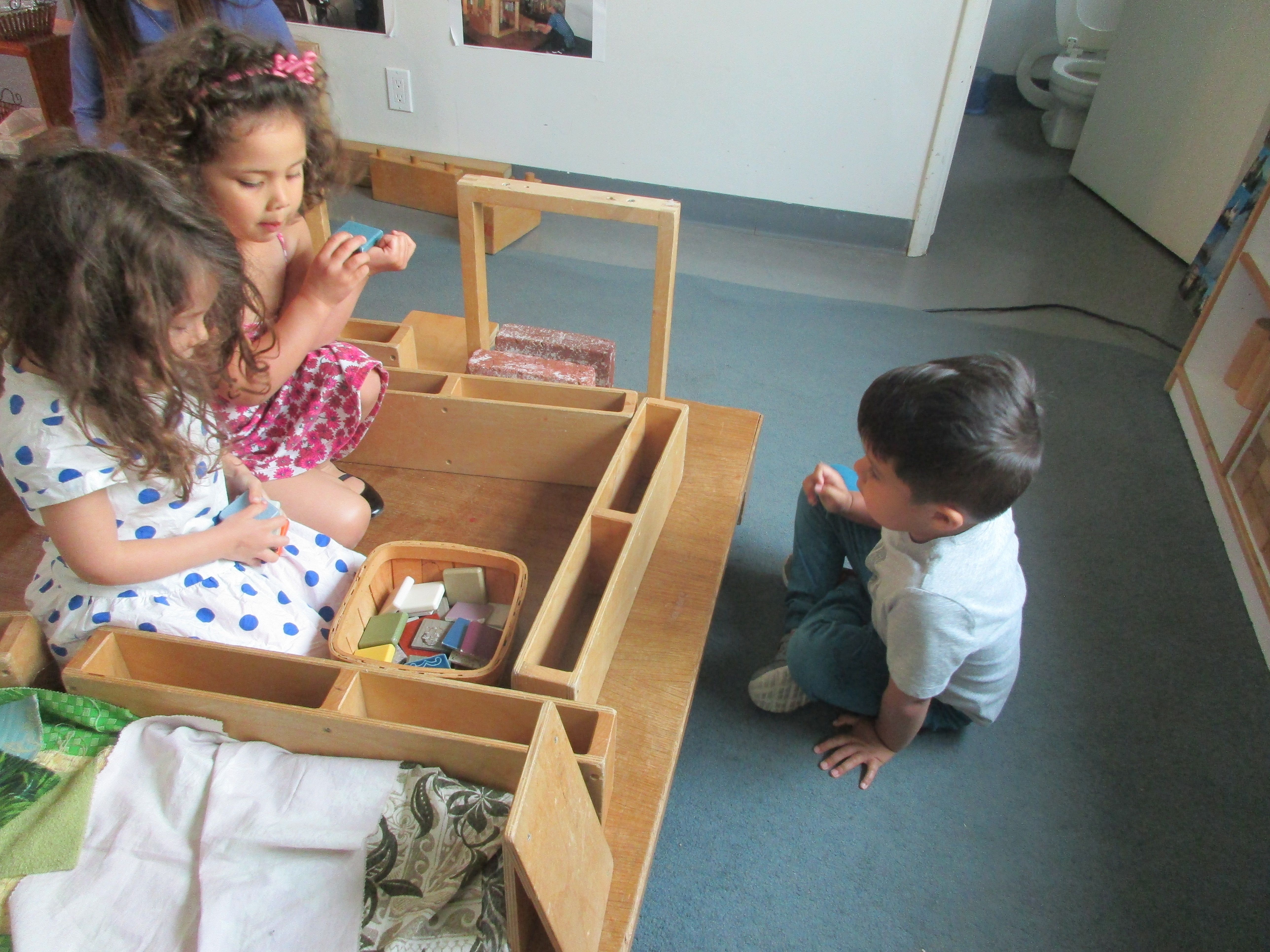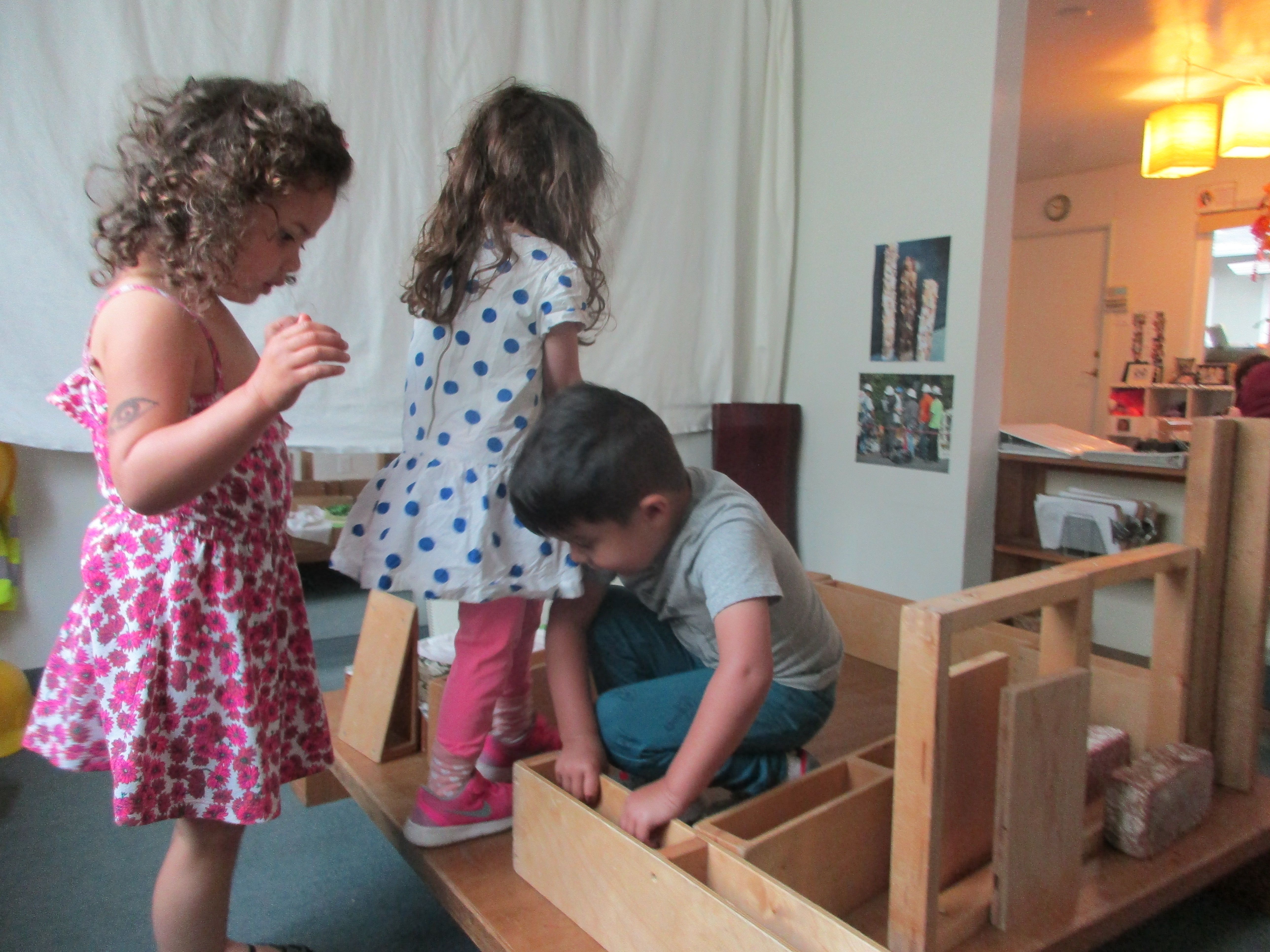 As stated in the articles from the Michigan State University Extension, Dahlia, and Harper are implementing the characteristics of symbolic play by the role play they each choose. Then Kai also pretends the quad block is a sliding door inviting the “people” to walk inside it. These type of social exchanges develop through practice and trust in relationships. These children have had previous experiences with each other and have been in the building space before. We as teachers seek out social interactions that enable the play to build up constructively. -Teacher Flora