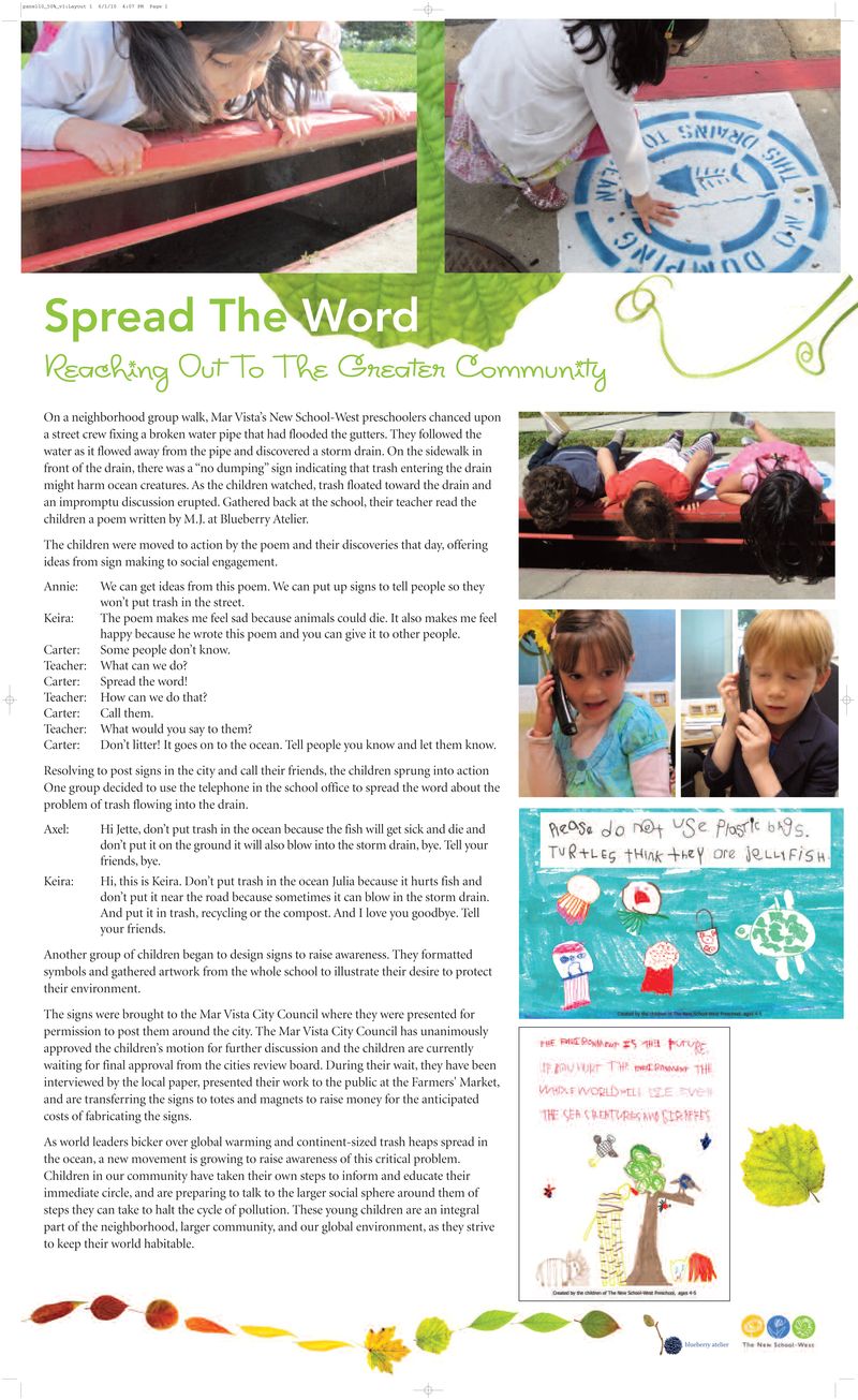Tricia, from Blueberry Atelier preschool has had a traveling exhibit of her school children’s environmental concern called; “Trash Talking”. It is based on her student M.J.’s poem and the ripple effect that poem has had in their small community. NSW caught a ripple and we’ve run all the way to the city with it.