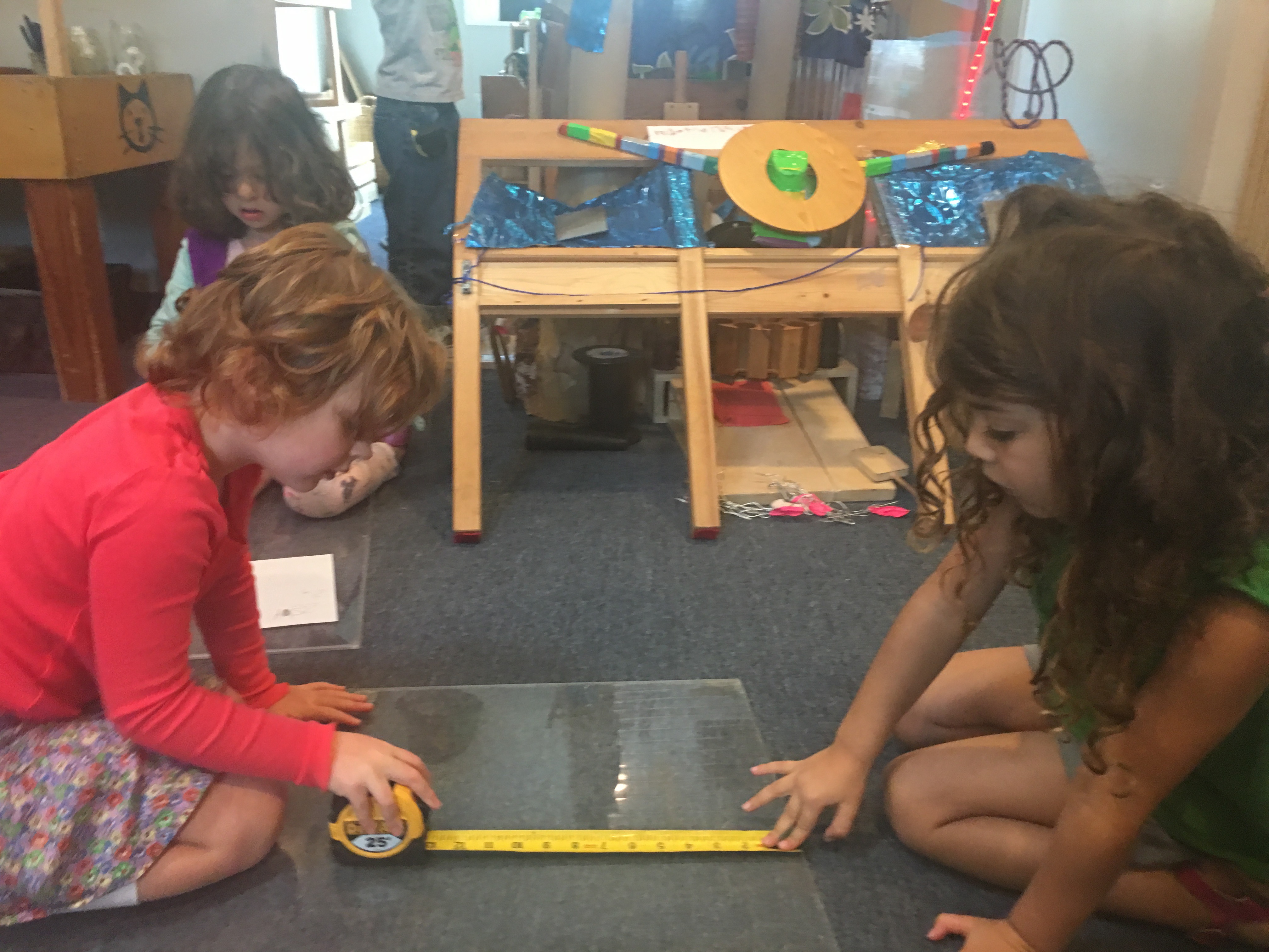 A different group of children met and took measurements for the glass they want to add inside the wood frame.