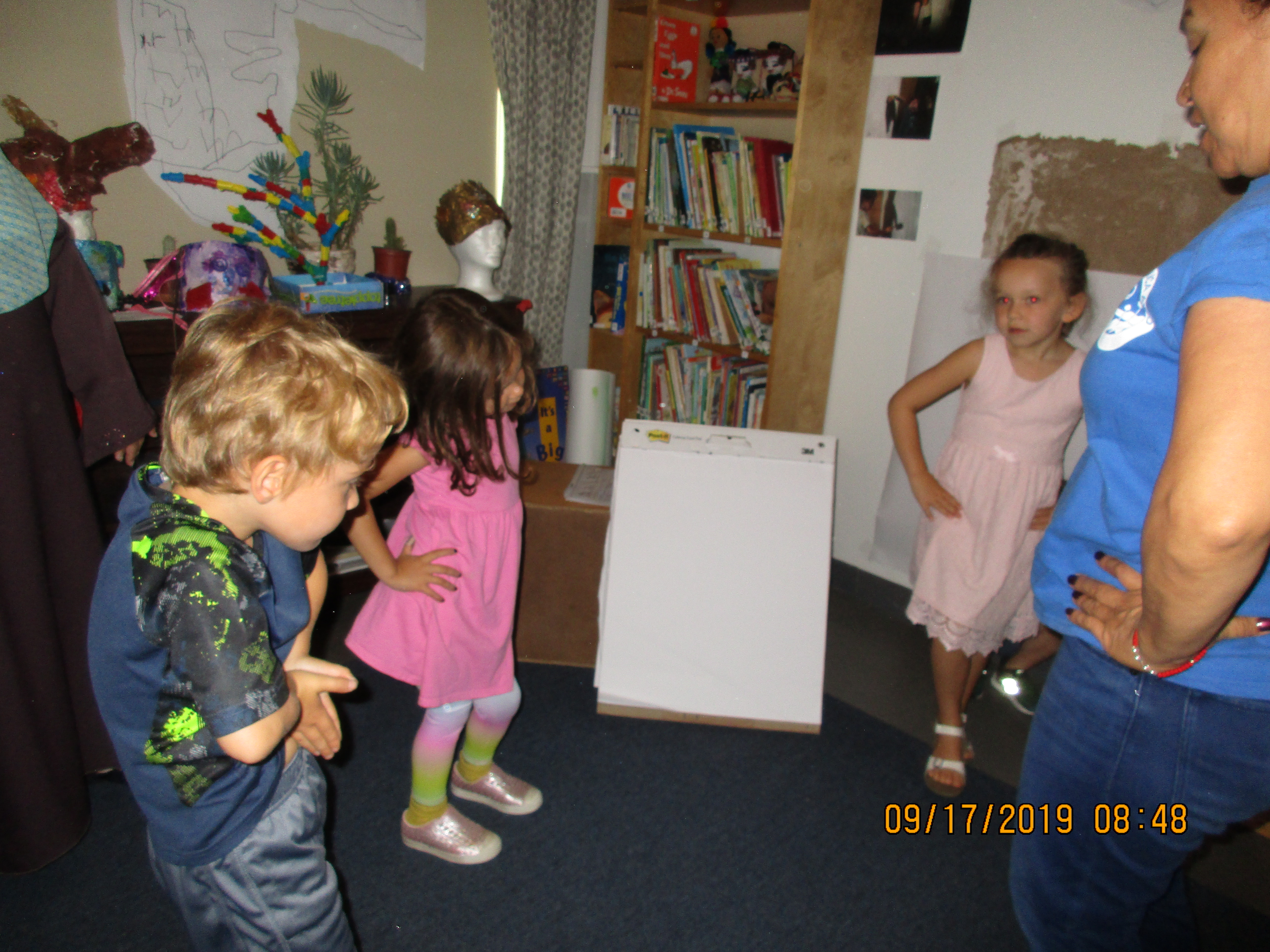 The children’s first opportunity to “act out a show” together in the Cactus Theater in the East Wing was approached individualistically. The teachers kept hearing, “I want to be…!, My idea is…!” and the characters didn’t have a clear role yet. Listening to each other appeared difficult and no clear agreement between the players was made.