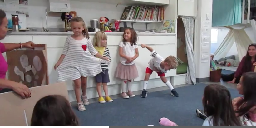 The children’s first opportunity to “act out a show” together in the Cactus Theater in the East Wing was approached individualistically. The teachers kept hearing, “I want to be…!, My idea is…!” and the characters didn’t have a clear role yet. Listening to each other appeared difficult and no clear agreement between the players was made.
