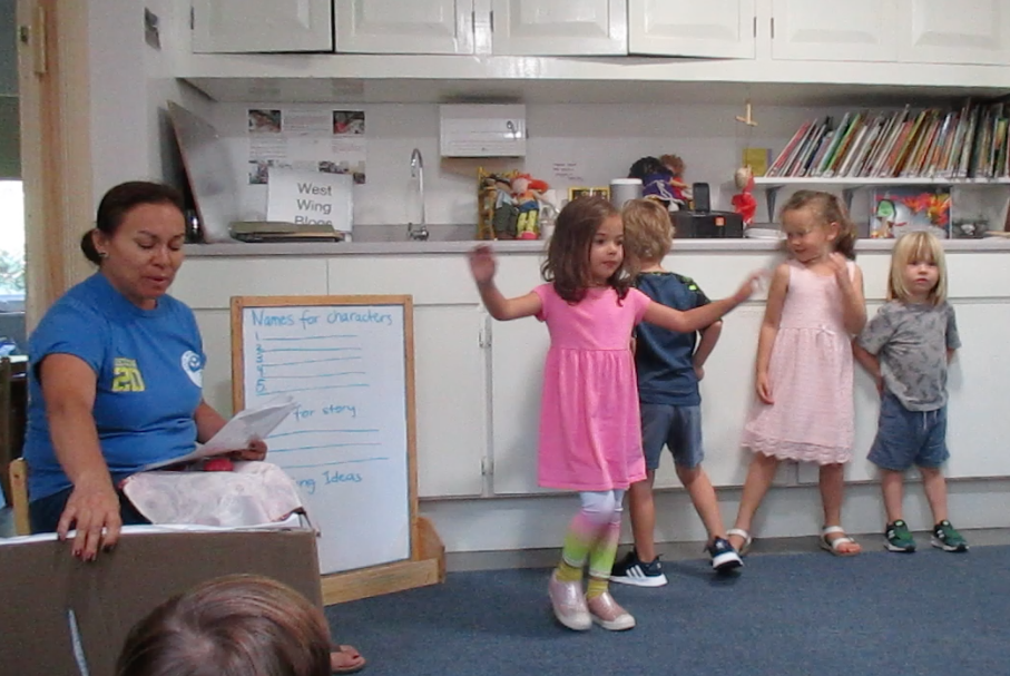 The children’s first opportunity to “act out a show” together in the Cactus Theater in the East Wing was approached individualistically. The teachers kept hearing, “I want to be…!, My idea is…!” and the characters didn’t have a clear role yet. Listening to each other appeared difficult and no clear agreement between the players was made.