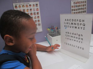 Jacob: I know all the letters.  It’s just really hard to write the lower cases. I’m better with the upper cases. That’s what I’m good at.