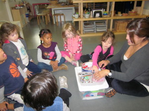 At large meeting time the children shared this idea with the whole East Wing. Everyone was very excited to make a surprise for Silvana. Jessica’s intern Frances, from SMC, was also very excited because sewing is one of her passions.