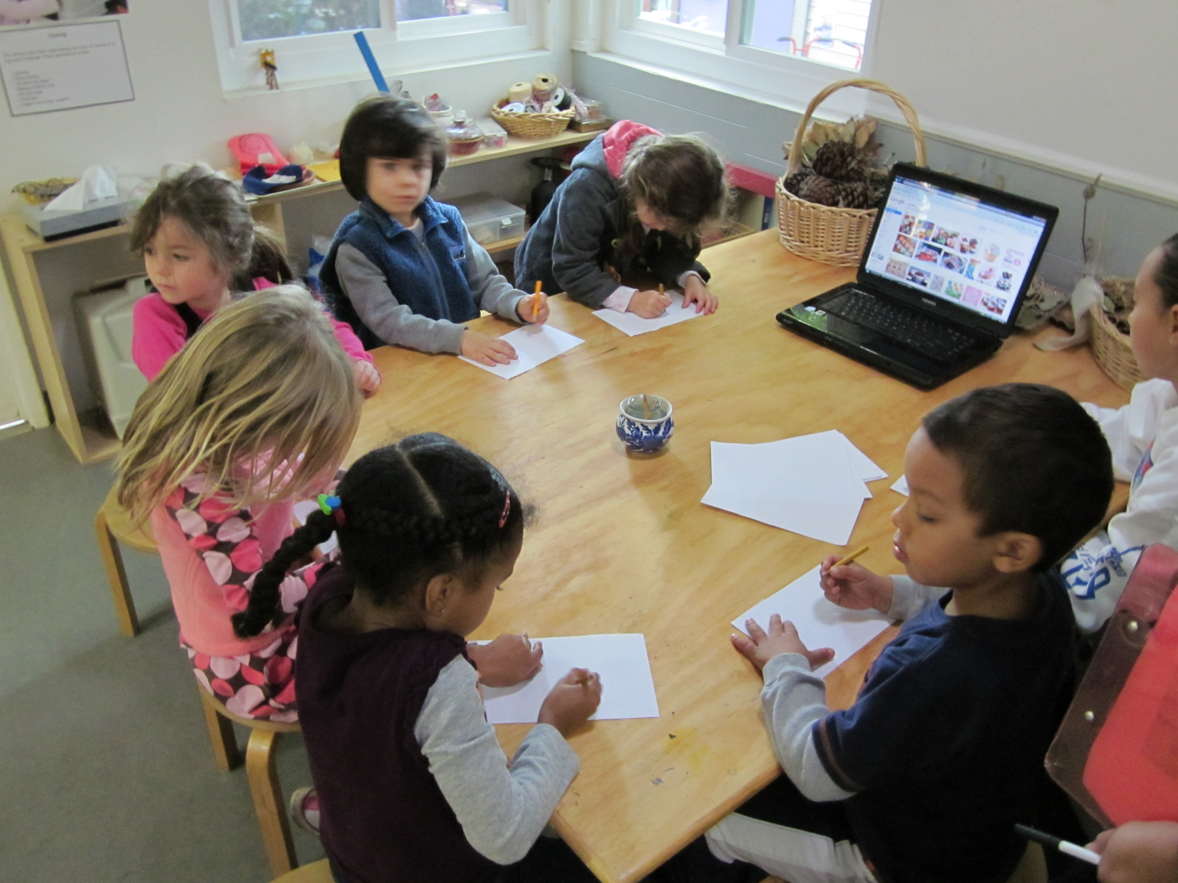 A small group has been formed to begin this exploration. At the first meeting the children were asked, “What cupcake idea do you have for the House Area?” Next they went to the studio table and drew their images.