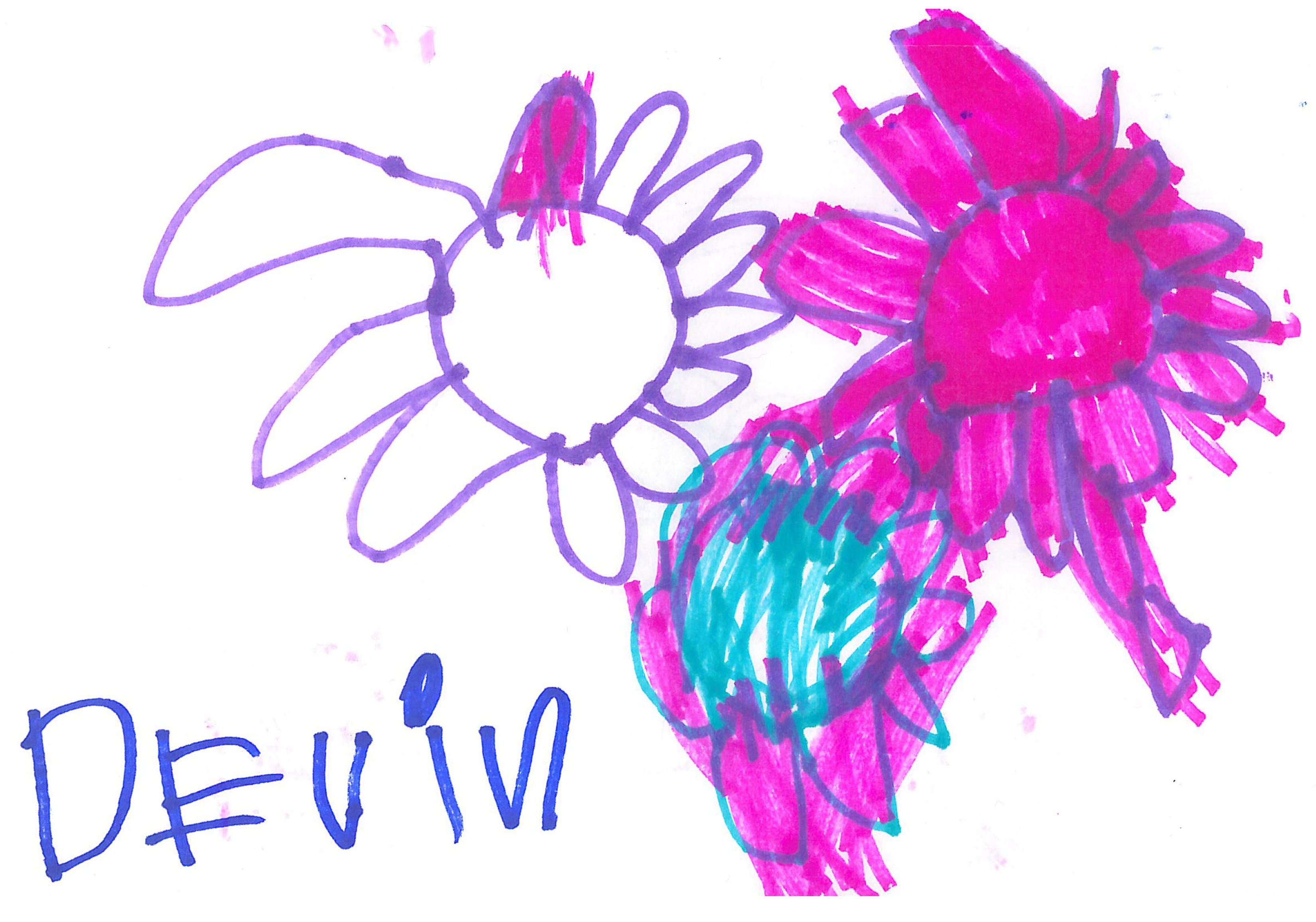 “I want to make pink and purple with a flower. It’s blueberry.” Devin