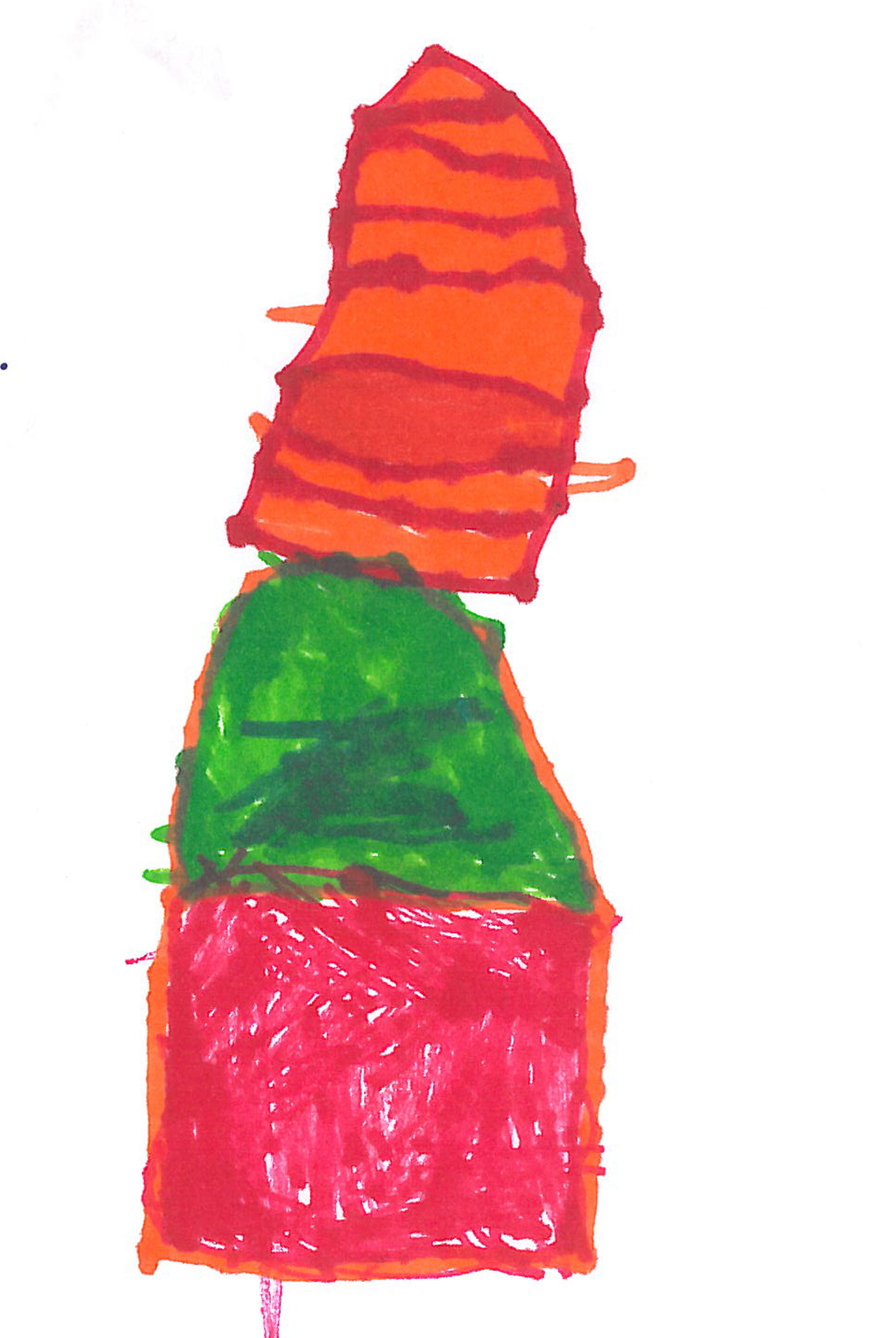 “This one has red sprinkles on white frosting and red frosting in the middle. It tastes like vanilla.” Kai
