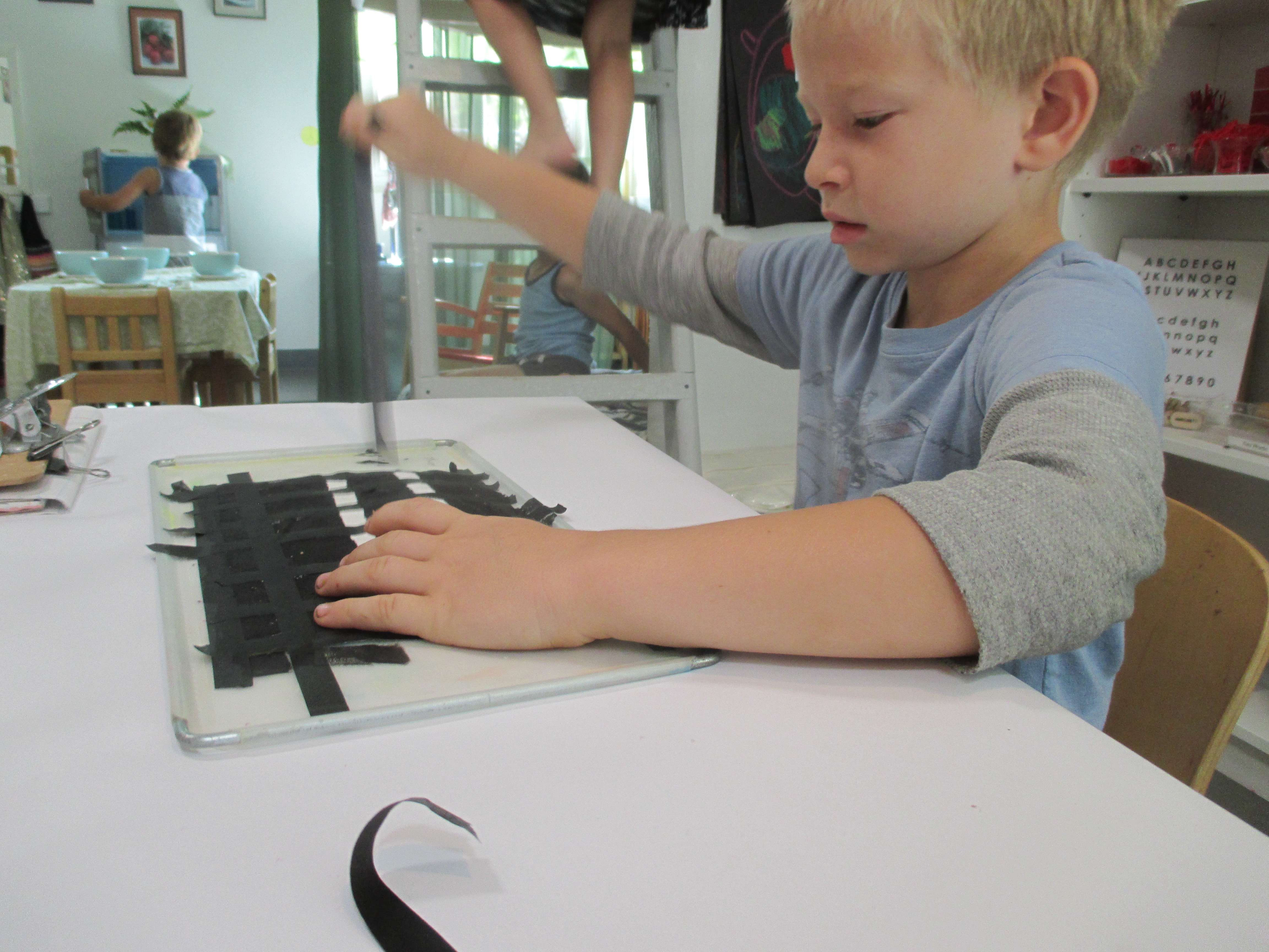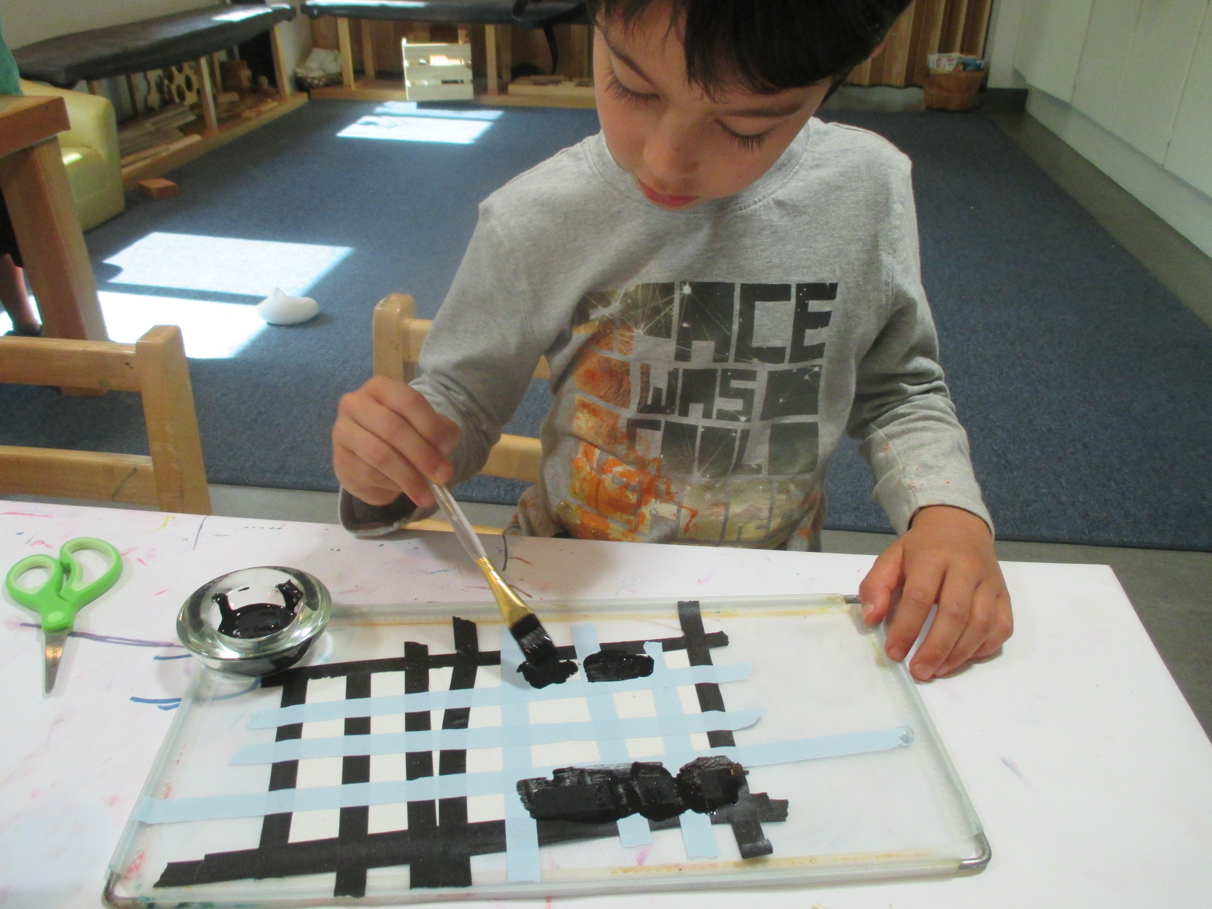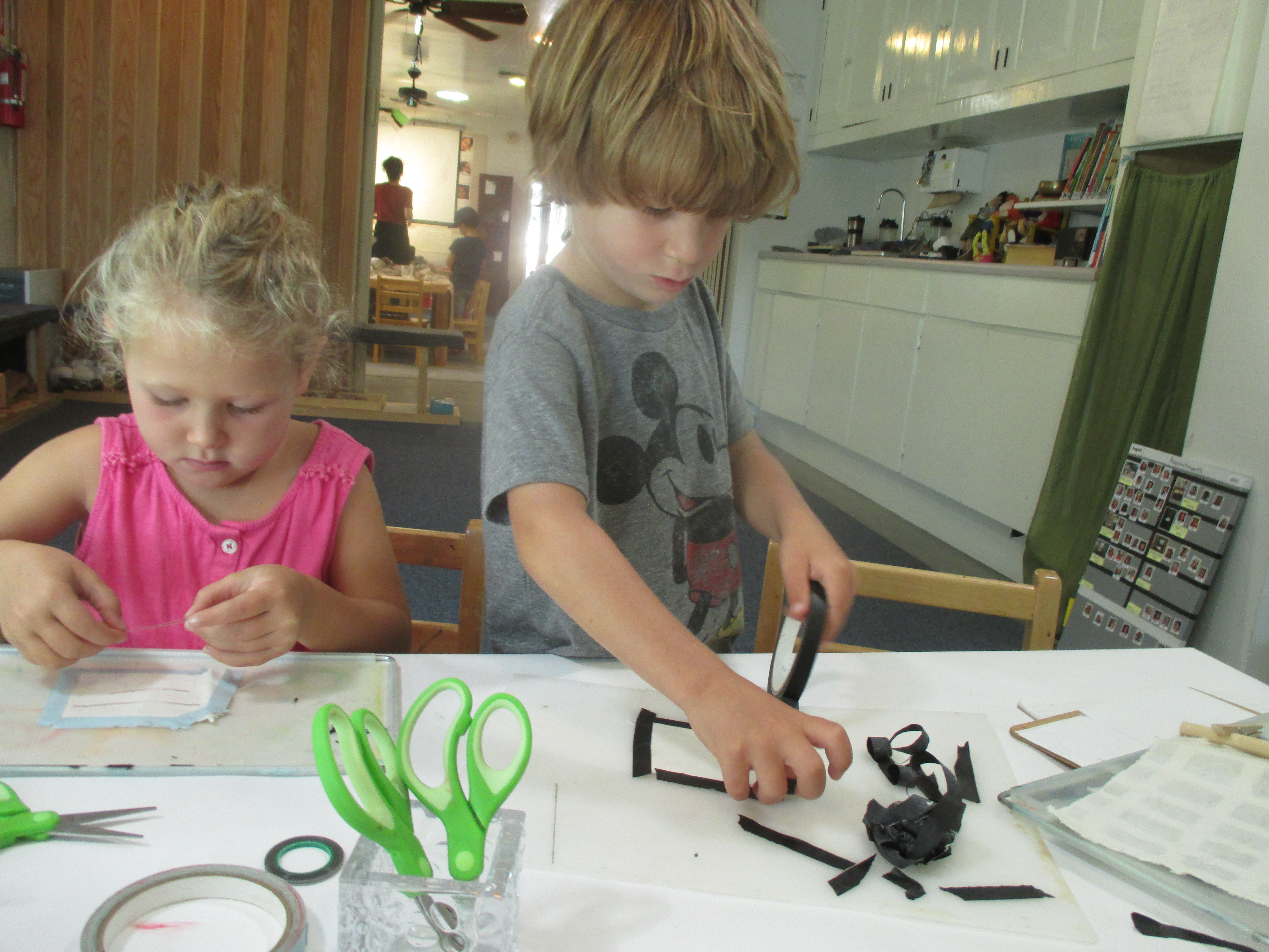 From these drawings, Cindy was informed as to what materials she might offer to expand on their ideas. She brought tape for resist painting and fabric to the next meeting. The children also invited more friends to add ideas.