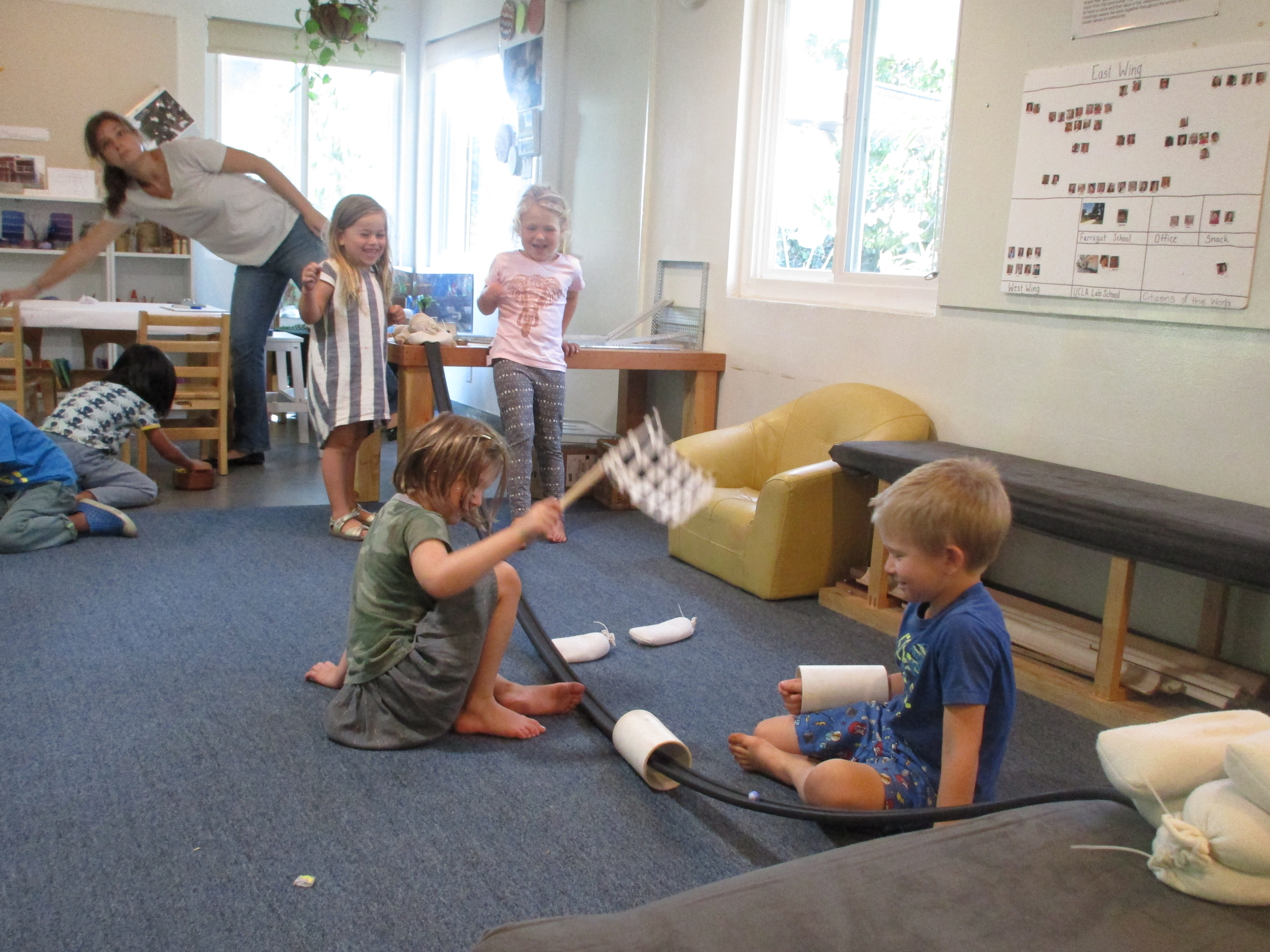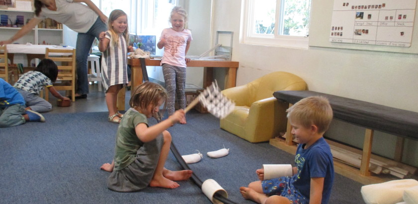 Cindy followed up with a group of children who wanted to make signs for the start and end of the track races that have emerged in the classroom. Based on previous observations, she gathered wood screws, dowels, skewers, hand drills, and wood glue to start the conversation in developing next steps.